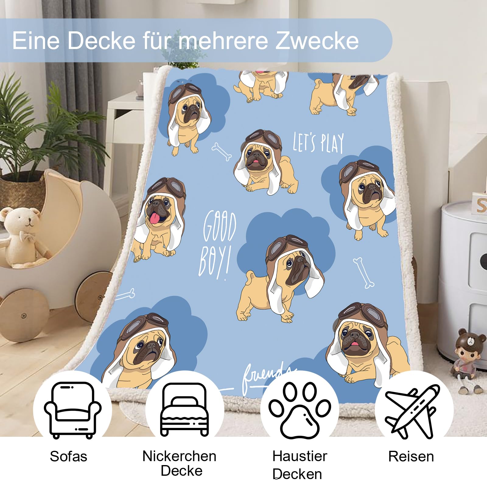 Couverture polaire pour caméras couleur pour adultes et enfants 50 "X40 Couverture Imprimé Teckel Réversible 150x200cm WONGS BEDDING Couverture Polaire De Noël Réversible Souple Pour Enfants Couverture Canapé Voyage Douce Taille de la couverture : 152,4 x 203,2 cm, parfaite pour se blottir à l'intérieur ou à l'extérieur ou comme une jolie chaise décorative, un canapé, un lit d'enfant, une chambre d'enfant ou un jeté de lit. Pliable de manière compacte pour un transport facile Couverture imprimée carlin : taille : 150 x 200 cm. Chien imprimé Sherpa Couverture Mignon Carlin Chien Polaire Jeter Couverture 3D Animal... Satisfaction garantie : essayez simplement nos produits et si vous ne les aimez pas absolument, faites-le nous savoir et nous vous rembourserons votre prix d'achat. Ne se décolore pas : la couverture confortable offre une meilleure résistance à la décoloration et aux taches que les couvertures en coton.