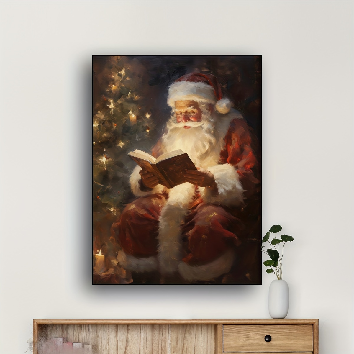 Carte De Festival Joyeux Noël Avec Le Père Noël Tenant Un Sac Cadeau... Ajoutez cette pièce intemporelle à votre collection de décorations de Noël et laissez-la inspirer chaleur et convivialité dans votre maison. C'est plus qu'une simple décoration murale, c'est une célébration des vacances, un rappel nostalgique des temps plus simples et une belle façon d'accueillir les invités Cadre Noel Heureux Dessin Animé Père Noël Tenant Le Cadeau De Noël | Vecteur Premium Toile De Noel Mural Père Noël Tenant Un Cadeau Et Souriant | Vecteur Premium
