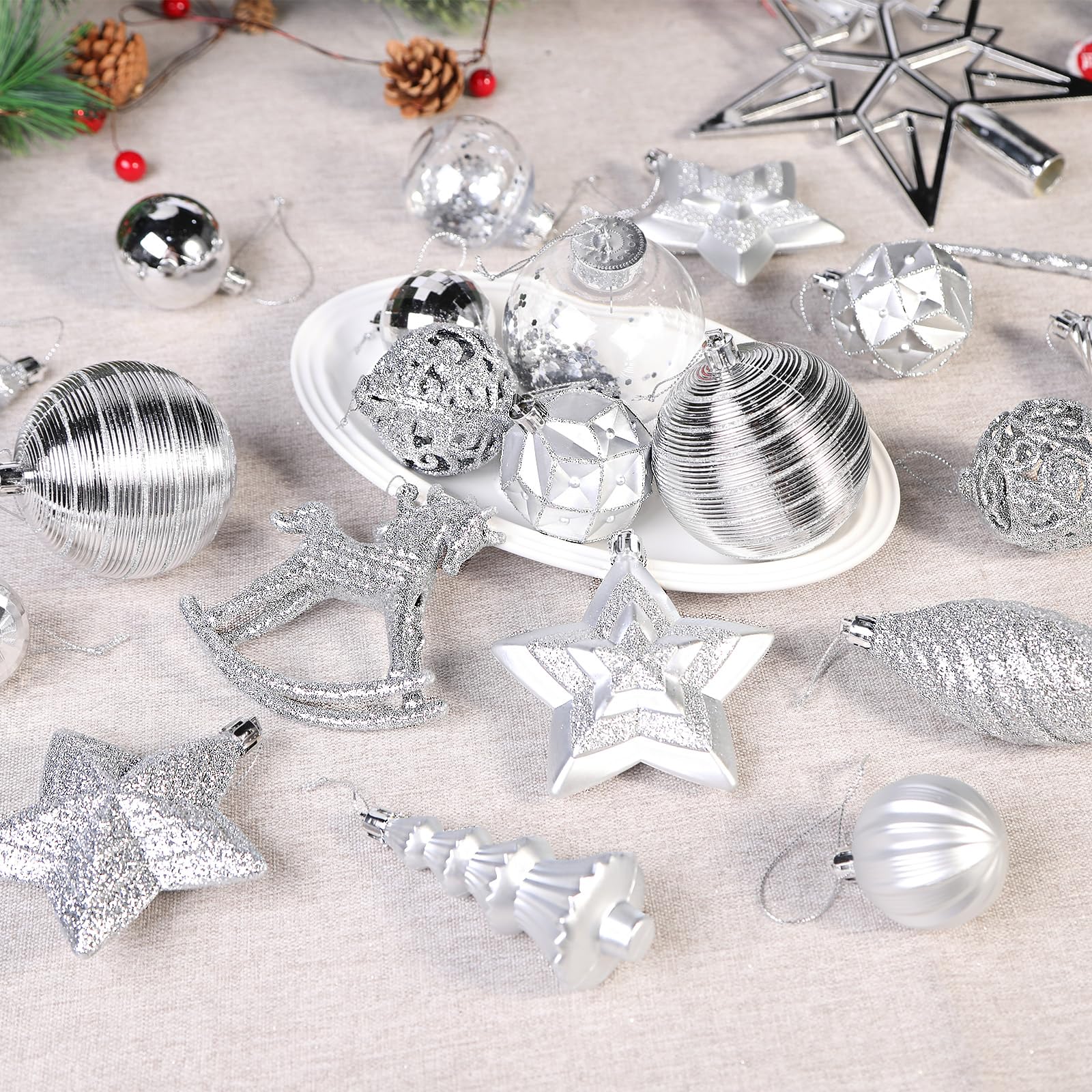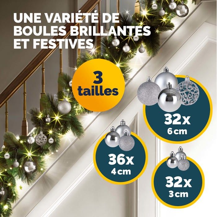Elles complèteront parfaitement vos décorations de Noël et de fêtes. SHareconn Lot de 100 boules de Noël en plastique incassable pour décoration de sapin de Noël, vacances, fête de mariage, argenté ; bleu. $29.99 with 33 percent... 🎄【Conception unique】L'ensemble de décorations de Noël est fabriqué dans une variété de finitions et de formes nouvelles de décorations de boules, comprenant non seulement des boules, des étoiles, des flocons de neige, des carrousels et d'autres formes, mais dispose également de 2 finitions spéciales : brillante, mate, pour rendre votre sapin de Noël plus beau. Lot de 100 boules de Noël Shareconn. Décorations Sapin Plastique 100 Pièces Boule De Noel Boules De Noël Incassables SHareconn - Lot De 100 Pièces Grosse Boule De Noel Crochets pour boules de Noël inclus pour faciliter l'accrochage. Livré avec des oreilles de suspension et un cordon. Ces boules sont fabriquées en plastique résistant, offrant une excellente résistance aux chocs, contrairement aux produits en verre traditionnels. 🎄【Matériau incassable】Fabriqué en plastique de haute qualité, très léger et difficile à casser. Ne vous inquiétez pas que le verre brisé blesse vos mains et celles de votre enfant, ou qu'il exerce beaucoup de pression sur le sapin de Noël. Décorations de Noël livrées avec un cordon. Les boules décoratives festives Shareconn sont parfaites pour décorer votre sapin de Noël, votre maison, vos mariages et vos fêtes. 100 Pcs Boules De Noël, Boule De Noël Traditionnel Rouge Vert Et Or... Une variété de formes uniques et variées. C'est aussi un excellent choix pour les décorations de vacances commerciales. Boule De Noël Rouge Et Or SHareconn Lot De 100 Boules De Noel