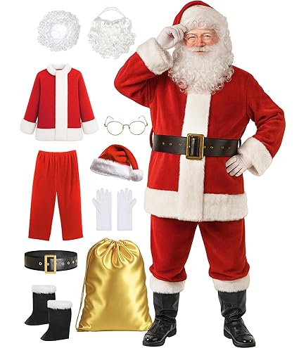 Thetru Costume de Père Noël professionnel de luxe – Taille L Pantalon avec taille élastique Apportez la joie de Noël à l'avance cette année. Perruque et barbe Classic Silver Intérieur en maille confortable... Costume Universel Grande Taille Costume Pere Noel Ensemble 12PCS, Déguisement Père Noël Deguisement Pere Noel Adulte Costume de Père Noël : Costume Pere Noel Ensemble,Déguisement père noël Adulte, Pantalon à Bande élastique Facile à porter :Le costume du pere noel peut être porté directement sur les vêtements et est facile à mettre et à enlever. Léger, bonne durabilité, le tissu non tissé a également un certain degré de chaleur, adapté pour être porté par temps froid d'hiver. Costume de Noël : des détails magnifiquement travaillés tels que des chapeaux et des ceintures donnent vie à votre image du Père Noël. Les costumes du Père Noël... Costume de Père Noël : le costume de Père Noël est fabriqué en tissu non tissé. Essentiels de fête :parfait pour Noël, Halloween, les fêtes de fin d'année, les productions théâtrales, le Père Noël et certains événements spéciaux. Les costumes du Père Noël sont un symbole de transmission de chaleur et de joie, apportant plus de joie à tout le monde pendant les vacances. Facile à porter :Le costume du pere noel peut être porté directement sur les vêtements et est facile à mettre et à enlever.