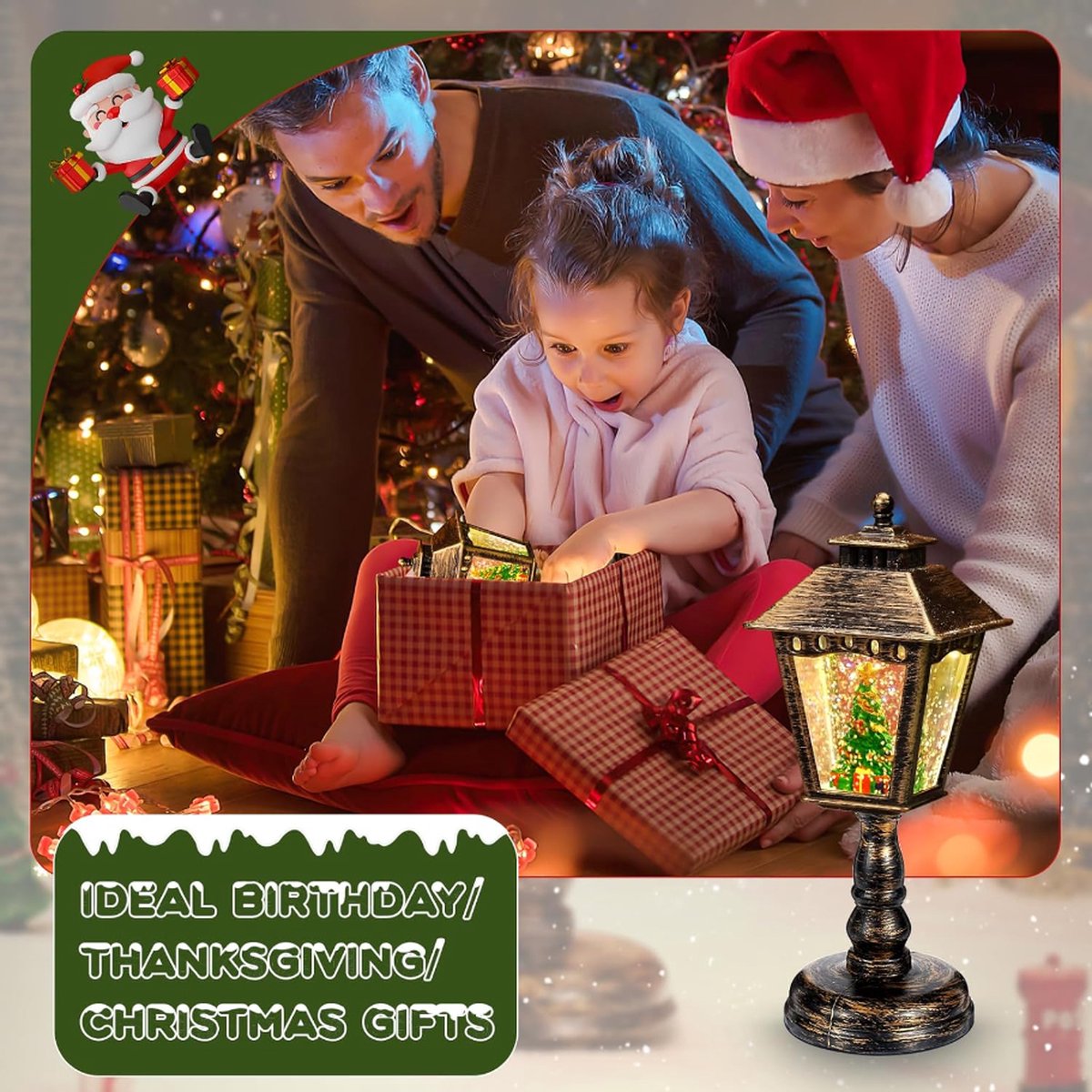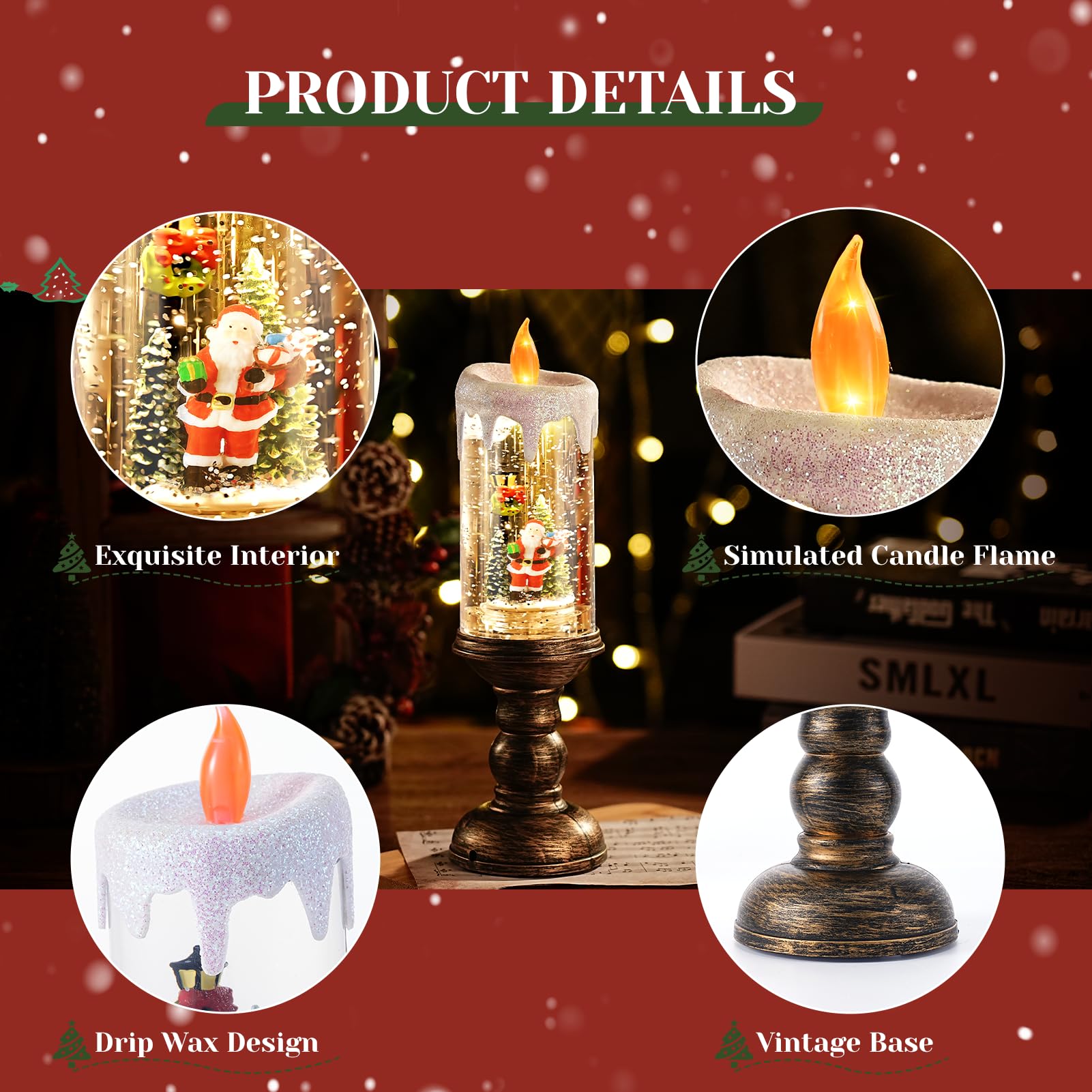 Lanterne De Noel Exterieur Boule à Neige De Noël - Lanterne Père Noël Dans Un Train Musical - LED Scintillante Avec Minuterie De 6 Heures - Fonctionne Avec Piles Et USB Boule à neige éclairée : cette belle boule à neige de Noël est livrée avec une lumière chaude, des paillettes flottantes tout comme les flocons de neige romantiques tombant à l'extérieur de la fenêtre, créant une atmosphère festive dans votre maison, mettant un sourire sur votre visage et réchauffant votre cœur avec un sapin de Noël. Boule à Neige Rétro Sans Fil Lanterne Noel Lanterne De Noël, Boule à Neige éclairée Avec Paillettes Tourbillonnantes, Lanterne De Table Pour Décoration De Noël Et Cadeau (Père Noël Boule A Neige Noel Lanterne Père Noël Paillettes Spécification:Matériau du produit : ABS + résineTaille du produit: environ 8x8x2 1 cm/3,15x3,15x8,27 poucesListe de colisage:1 x lanterne boule à neige de NoëlRemarques :1., En raison des différents effets de moniteur et de lumière, la couleur réelle de l'article peut être légèrement différente de la couleur montrée sur les images., 2., Veuillez pardonner un léger écart de mesure dû à la mesure manuelle. 2 Méthodes d'alimentation]- Cette lanterne de Noël avec led est alimentée par des piles (non incluses) et un câble USB (inclus), il était facile à utiliser, il suffit d'allumer le bouton d'interrupteur en bas, la lumière chaude avec des paillettes clignotantes et la projection du Père Noël apparaîtront immédiatement, apportant... Lorsque la lanterne s'allume, la boule à neige lumineuse émettra une lumière éblouissante et créera des souvenirs inoubliables pour vous. Caractéristiques du... Placez-le partout où vous souhaitez l'afficher : sur le rebord de la fenêtre de votre pièce, dans le salon ou près de la cheminée. Style vintage : dotée d'un design de lanterne rétro et d'éléments de Noël, cette lanterne de Noël bien conçue crée un monde de conte de fées, formant une image magnifique et solennelle, rehaussant l'atmosphère de Noël. Améliorez votre ambiance de vacances : décorez votre maison avec notre superbe lanterne boule à neige. Apportez la des fêtes dans n’importe quelle pièce avec cette charmante décoration ! Large utilisation : améliorez votre décoration d'intérieur avec notre lanterne boule à neige. Égayez votre chambre avec cette boule à neige de Noël rétro.