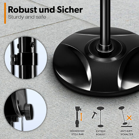 Radiateur Quartz Juskys Juskys Radiateur En Verre 2000W – Noir, Chauffage Infrarouge Mural Ou Sur Pied, Commande Par Application, écran LED, Sécurité Et Télécommande Chauffage Instantané Sans Préchauffage Chauffe-Terrasse Radiant à Infrarouge Série W - 2000 watts - 39 po KESSER® Radiateur infrarouge IR-ulti Radiateur Chauffage à quartz Radiateur infrarouge... Le radiateur infrarouge 2000 W diffuse immédiatement une chaleur réconfortante pour terrasse, balcon, jardin ou véranda. Avec trois niveaux de puissance (650/1350/2000 W), adaptez facilement l’intensité à vos besoins. Sa classe IP34, son système anti-basculement et sa construction en acier robuste garantissent sécurité et longévité – pour prolonger vos moments de détente à l’extérieur. Radiateur infrarouge 2000W noir extérieur - Chauffage avec tubes quartz, 3 niveaux & support télescopique Profitez d’une chaleur agréable en plein air – même lorsque les soirées deviennent fraîches. Caractéristiques : - Chaleur infrarouge pour terrasse & balcon - Trois niveaux de puissance jusqu’à 2000 W - Support télescopique réglable en hauteur - Protection IP34 contre les intempéries - Sécurité anti-basculement & pied solide en acier Données techniques : - Marque : Juskys - Couleur : Noir - Éléments chauffants : 3 tubes quartz - Pied + boîtier : Acier - Puissance : 650 / 1350 / 2000 W - Tension : 220–240 V - Indice de protection : IP34 - Câble : 1,7 m - Inclinaison : 45° - Poids net : 8,4 kg Dimensions : - Chauffage (HxLxP) : 170 x 50 x 50 cm - Hauteur réglable : 170–210 cm - Abat-jour : 50 x 36 cm Contenu de l’emballage : - 1x radiateur infrarouge - 1x trépied - 1x kit de fixation murale - 1x manuel Produit livré en kit, montage facile, expédié par colis. ✅ Puissance réglable : choisissez entre 650, 1350 ou 2000 W – économie d’énergie & confort adapté ✅ Utilisation flexible : montage mural ou sur pied grâce au support télescopique réglable de 170 à 210 cm Chauffage radiant Blade 2000w Noir
