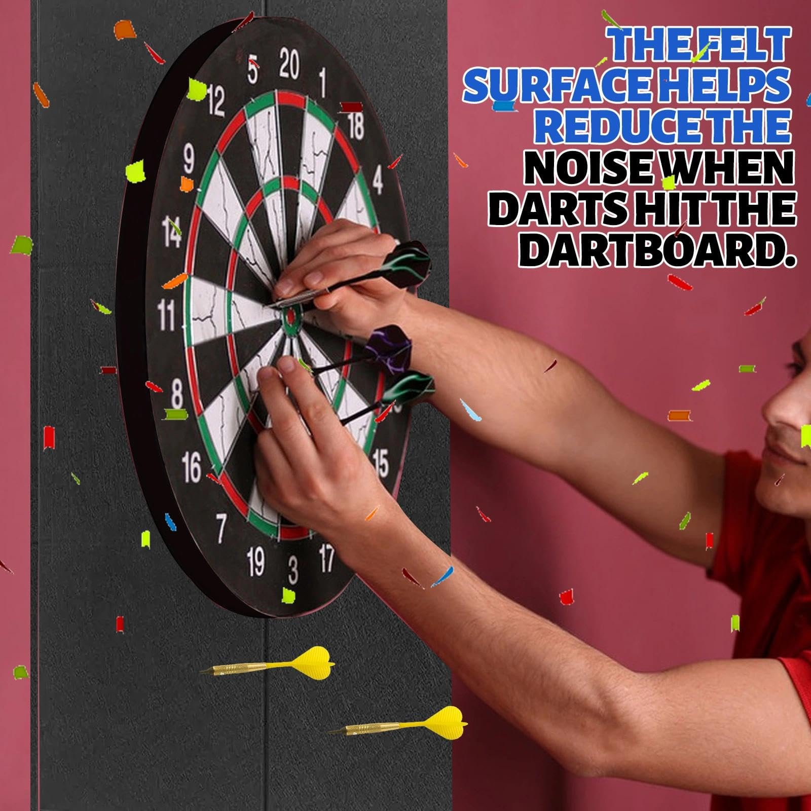 Pour une adhérence optimale, ne pas solliciter pendant 24 heures. Profitez de votre jeu de fléchettes sans souci des dommages. Il suffit de positionner la protection et le jeu peut commencer. 🎯 Réutilisable et sans résidu : Les pads peuvent être facilement retirés et repositionnés sans laisser de résidus adhésifs. Revêtement Mural - Panneaux Acoustiques - Revêtement Mural Feutre Panneau Acoustique Mural Acoustique 3d Acousticvilt 80x80cm Gris Clair Decoration Murale Murale Panneaux Muraux 3d Decoration Murale 【Protection Murale Grande Taille】Notre protection murale pour cible de fléchettes 60 x 90 cm offre une protection optimale pour votre mur et cible. 🎯 Application facile : L'adhésif puissant au dos permet une installation sans effort - il suffit de retirer le papier protecteur et de le positionner à l'endroit souhaité. Peinture Acoustique Cible de Fléchettes Hexagon Basic L (100 X 86 CM... 【Protection Complète】Avec une épaisseur de 1,2 cm, le panneau protecteur offre une couverture optimale pour les murs et pointes de fléchettes, protège des dommages et permet un jeu sans souci. Caractéristiques : 🎯 Fonction protectrice : La surface douce en feutre protège votre mur des dommages causés par les fléchettes rebondissantes et préserve également les pointes de vos fléchettes. 【Installation Facile】L'adhésif autocollant au dos permet une installation sans outils supplémentaires. Panneau Cible Jeu Fléchettes KOTO Pro Edition Noir, Set De Fléchettes Avec Fléchettes, En Sisal Et Support Flechette Mural Feutrine Autocollante Gris Foncé, Feutrine Rouleau 40 cm x 220 cm x 1... Parfait pour les appartements, bureaux et autres pièces.