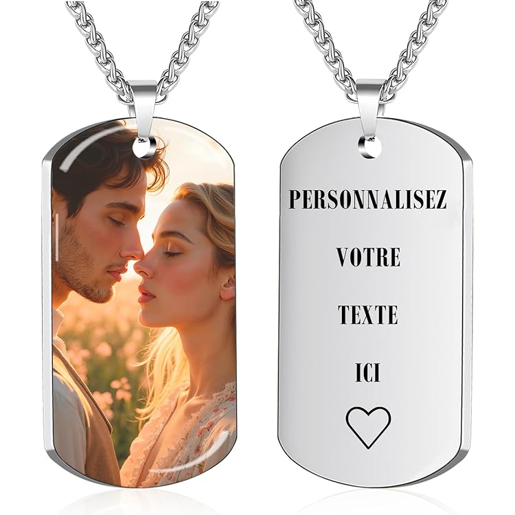 Collier pendentif rond en acier inoxydable avec gravure personnalisée Dog Tag double bleu personnalisé avec gravure texte Cadeau Personnalisé Couple Anniversaire MeMeDIY Personnalisé Couple Porte-clés Ensemble Gravure Personnalisée Nom/Date Pour Femmes Hommes Petit Ami Petite Amie En Acier Inoxydable Correspondant Coeur Puzzle Charme Porte-clés Amant Cadeau Acier Inoxydable Hypoallergénique Cadeau ★ INSTRUCTION DE GRAVURE - Pendentif personnalisé double face personnalisé, photo gravée en image noir et blanc sur le devant et texte gravé au dos de l'étiquette. ★ COMMENT ENVOYER UNE IMAGE - Cliquez sur le bouton Personnaliser maintenant - Ajouter une image sur la face avant, puis sur Ajouter du texte sur la face arrière. Personnalisé Dog Tag Porte-Clés Personnalisé Photo Gravure Photo-Date... Notre équipe de conception ajustera l'image pour l'adapter au mieux à l'étiquette de chien. Plus important: choisissez l'une de vos photos à télécharger, vous pouvez utiliser n'importe quelle image. Ce sera à toi de choisir! ★ CADEAUX SPÉCIAUX PARFAITS - Magnifique cadeau de Noël, cadeau d'anniversaire, cadeau d'anniversaire, cadeau de mariage, cadeau de fiançailles, cadeau de Saint Valentin, cadeau de fête des pères, cadeau de fête des mères ou tout autre cadeau de fête spécial pour votre bien-aimé, comme la sœur, le mari, femme, copain, copine, papa, maman ou meilleurs amis.