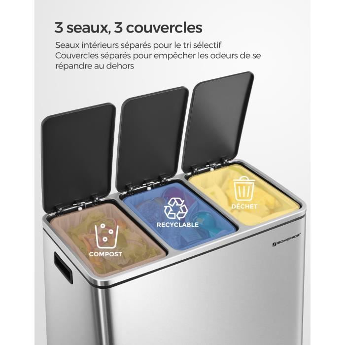 Poubelle Cuisine 100l Norggo® Poubelle Tri Selectif 2 Bacs 50L - Sac Tri Selectif Pour Le Plastique Et Le Poubelle A Couche Lot de 3 poubelles de tri sélectif d'intérieur 25 litres en plastique... Poubelle 1home 30 litres ou comment trier sans emcombrer votre cuisine Poignées confortables : La poubelle de cuisine est dotée de deux poignées en aluminium à grip souple, qui garantissent une protection et un transport faciles et confortables. 82L (Noir) Poubelle Recyclage Pliable Poubelle Tri Sélectif avec... Elle est parfaite pour la cuisine ou la chambre d'enfants. Capacité : La poubelle de tri sélectif à 2 compartiments mesure 60 cm (L) × 30 cm (l) × 45 cm (H), soit environ 81 litres, et peut contenir 25 bouteilles non comprimées. Elle s'ouvre automatiquement lors de l'utilisation et peut seplier lorsqu'elle n'est pas en usage, pour économiser de l'espace. Pour un tri sélectif : La poubelle de tri sélectif est clairement identifiée par des marqueurs de tri, ce qui facilite le classement et la séparation des diverses bouteilles vides, pour un recyclage optimal des matériaux durables.