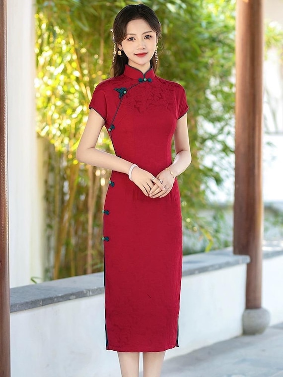 Qipao Brodé Traditionnel CHIC Nouvel An Cheongsam Sexy Satin Fourche Longue Qipao Robe Chinoise Conçu pour la femme moderne, ce Qipao présente une silhouette flatteuse qui accentue vos courbes sans effort.Le décolleté haut ajoute une touche... Nouveau Cheongsam chinois - Solutions de robes élégantes et élégantes Tissu de haute qualité : fabriquée à partir de matériaux de haute qualité, cette robe confortable et durable, ce qui la rend parfaite pour diverses occasions. Idéale pour des occasions spéciales, elle évoque un charme intemporel Robe chinoise pour femme – Robe d'été longue et mince Cheongsam col montant à manches... Entretien facile : la robe est lavable en machine, assurant qu'elle reste en excellent état même après plusieurs utilisations et lavages. Que vous assistiez à un événement formel, que vous célébriez un festival ou que vous profitiez d'une sortie décontractée, cette robe polyvalente peut être facilement habillée ou décontractée pour répondre à vos besoins de style. Facile à entretenir, il suffit de le laver en machine pour le garder aussi beau que la beauté de la culture traditionnelle chinoise avec ce qipao exquis et élégant. Robe Cheongsam chinoise brodée manches courtes longue longueur femme traditionnelle Qipao Découvrez la mode traditionnelle chinoise avec la robe Cheongsam chinoise.