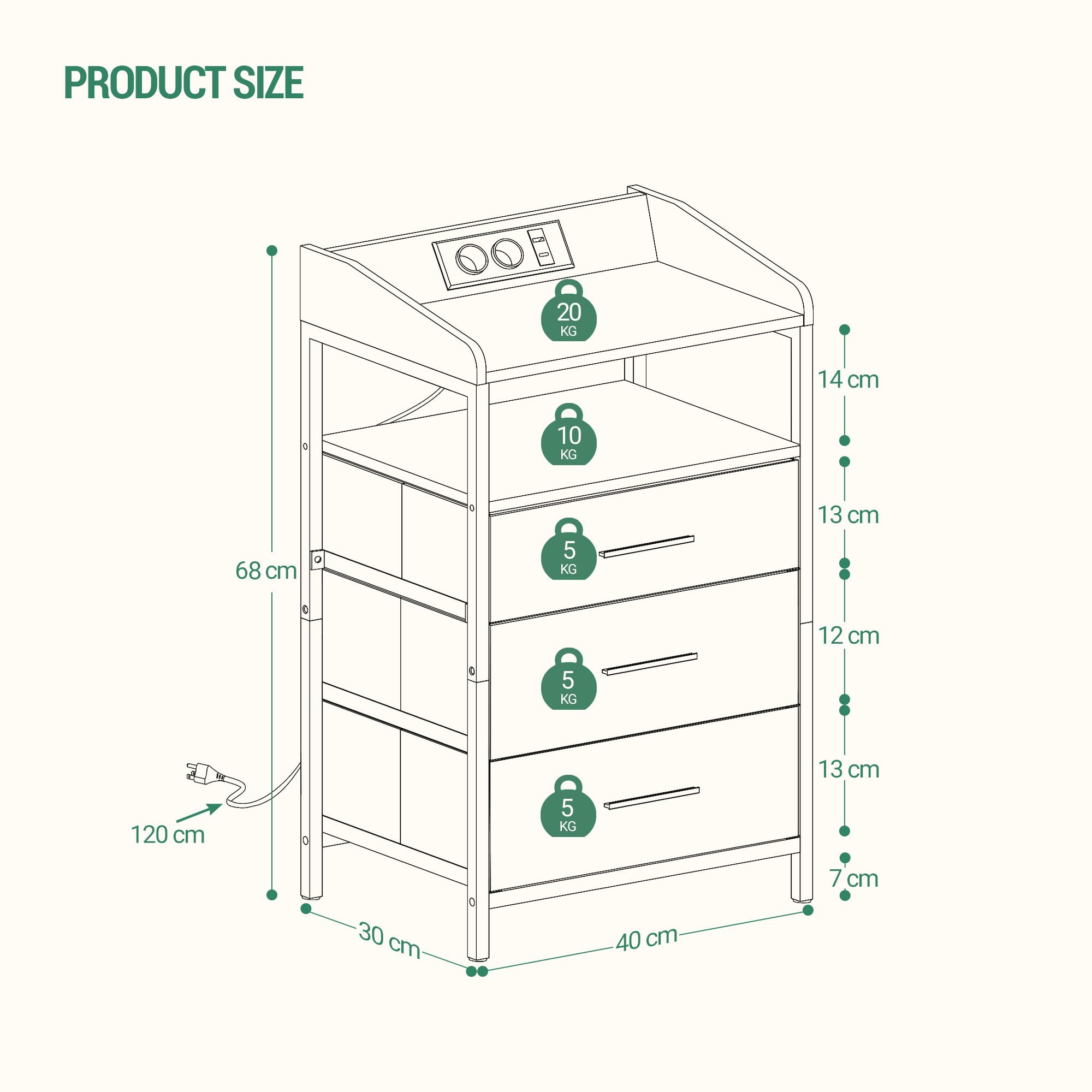 Giantex Lot de 2 tables de nuit en rotin avec tiroir, 4 pieds en étal Contenu du Paquet : 1 x Table de chevet, 1 x Dispositif anti-basculement Table De Chevet Lot De 2 Hzuaneri Table De Nuit Avec Luière LED, Table D'appoint Avec Station Table De Nuit étagère Et Tiroirs Avec Ports Usb Et Prises Poids du Produit: 8 kg Elle offre 2 tiroirs spacieux en tissu pour ranger des objets personnels tels que des clés, des télécommandes, etc. Les étagères offrent des possibilités de rangement supplémentaires pour les lampes, les livres et autres objets Hzuaneri Table de Chevet, Table de Nuit avec Station de Recharge Pratique La table de chevet est équipée de 2 prises CA, 2 prises USB, permettant de recharger plusieurs appareils... Elle constitue une solution polyvalente qui peut être utilisée comme table de chevet dans une chambre à coucher, une table de chevet pour canapé-lit, une table de chevet dans un dortoir ou un meuble de rangement pour un bureau à domicile 【Avec Station de Recharge】Table de chevet est équipée de 2 prises secteur et de 2 ports USB, ainsi que d'un cordon d'alimentation de 1,5 mètre, vous permettant de recharger facilement votre téléphone portable, votre tablette ou votre lampe de bureau depuis votre lit Le dessus et les compartiments ouverts de la table de nuit sont en bois certifié FSC Matériau: Panneau de Particules, Métal, Tissu non tissé 【Style Minimaliste Moderne】Table de nuit présente un design contemporain tout en utilisant efficacement l'espace vertical de la pièce pour offrir une grande capacité de rangement. Spécifications : Couleur: Blanc