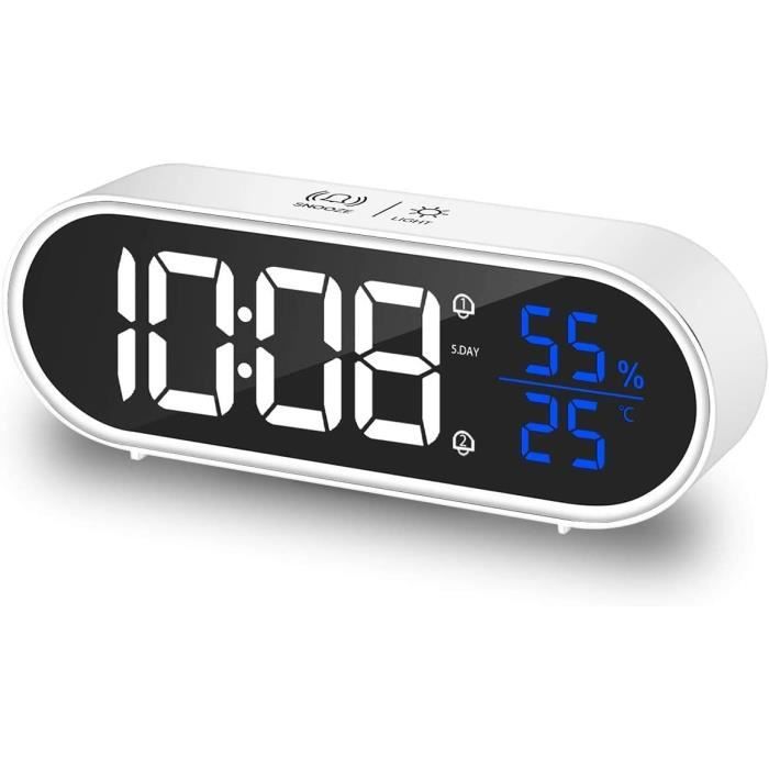 Réveil Numérique, Alarm Réveil LED avec Fonction Snooze, Luminosité Réglable, Snooze, Commande Vocale, 12/24H, Port USB, Charge des Ports USB (Noir) | Leroy Merlin La fonction snooze de ce alarm clock vous accorde 5 à 60 minutes de sommeil supplémentaire Réveil Design Moderne Réveil Ado Réveil Blanc Led Numérique Intelligent Wi-fi Lampe De Chevet 7 Couleurs Radio Fm Avec Double Alarme Simulation Du Lever Du Soleil Radio Réveil Numérique Réveil LED Rechargeable Double Alarme Double Alarme pour un Réveil Personnalisable-Ce réveil double est idéal pour les couples. Rechargeable - 2 Alarmes - Température - 13 Sonneries - 4 Luminosités - RIWILL. 4,4 / 5. 16 avis. 19,99 € · Réveil Numérique, Alarm Réveil LED avec Fonction... Côté réveil, il y a deux alarmes indépendantes, 18 sonneries au choix (de la musique classique aux bips en passant par des chants d'oiseaux), et une fonction... Sa batterie rechargeable intégrée et sa fonction de sauvegarde font de ce alarm clock un compagnon fiable Affichage de la Semaine & Luminosité Ajustable-Ce réveil numérique unique affiche le jour de la semaine. Design Moderne et Fonctionnel-Avec son style épuré, ce réveil numérique est bien plus qu'un simple reveil ; c'est un accessoire design qui s'intègre avec élégance dans toute la maison Économisez l'énergie grâce à l'extinction automatique après 6 secondes. Personnalisez facilement l'affichage 12H/24H et la luminosité de ce reveil sur 4 niveaux Toussez ou tapez des mains pour illuminer l'affichage de ce reveil numerique.
