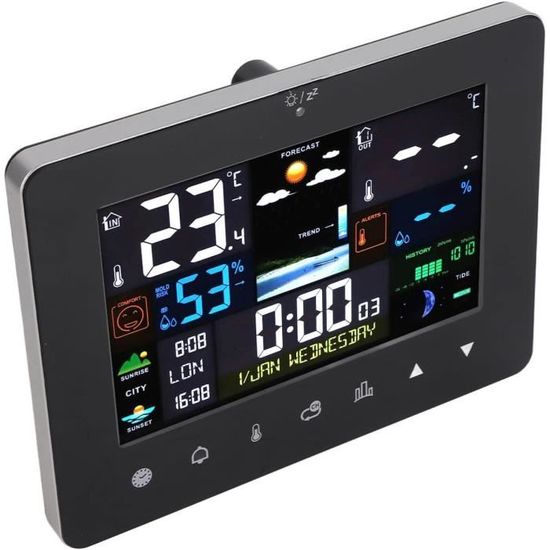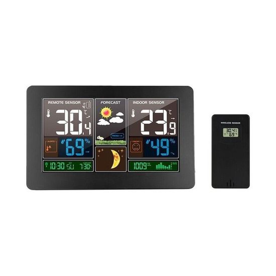 Réveil À Projection Station Météo Sans Fil Avec Capteur Extérieur Thermomètre Hygromètre Affichage de la température Réveil Calendrier Affichage Vert Qiilu Horloge Réveil Numérique Sans Fil Thermomètre Hygromètre Avec Radio FM Affichage Température Vous pouvez voir clairement l'heure, la date, la température et l'humidité sous n'importe quel angle sans perdre d'informations précises. Avec 3 Capteurs sans Fil : La station météo comprend 3 capteurs sans fil extérieurs (portée jusqu'à 60 m CLIPSONIC Radio-réveil Clip Sonic-1103 au meilleur prix en Tunisie sur...