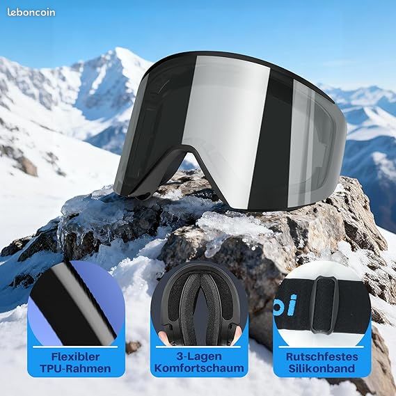 La meilleure qualité et des caractéristiques bien pensées qui vous convaincront. Lunettes Casque Compatible Lunette De Soleil Enfant KTEBO Lunettes De Ski OTG - Anti-buée Protection UV - Compatible Lunettes De Vue - Argenté Lunettes De Ski Anti-buée Masque Ski Photochromique La vitre est parfaitement maintenue dans le cadre et vous offre la fiabilité dont vous avez besoin pour les descentes sportives et dans le parc radio. Conception OTG (over goggles) confortable] Les lunettes OTG sont spécialement conçues pour que vous puissiez les porter au-dessus de vos lunettes de ski. Dimension optimale pour les verres correcteurs Confort sans souci du premier au dernier levage ► Votre confort est notre objectif. Vous recevrez une coque de protection élastique gratuite. Pourquoi choisir les lunettes de ski Findway ? Nous avons notre propre usine normale et une équipe professionnelle de recherche et développement. Findway OTG Masque de ski Verres haute performance 100 % de protection UV et performance anti-buée et anti-rayures améliorée. Design OTG et compatible avec casque Le design OTG vous permet de porter vos lunettes sous les lunettes. Sangle... Le revêtement anti-buée éprouvé et le système de ventilation vous garantissent une vision durable sans buée. Aspect moderne et protection fiable ► La double vitre cylindrique avec miroir REVO complet assure un look rétro cool et protège complètement vos yeux. Plus de durabilité, plus de plaisir avec le produit. Findway Lunettes de ski pour hommes et femmes Elles bloquent 100 % des rayons UV nocifs et réduisent l'éblouissement. Gagnant de la performance pour vos sports d'hiver ► Obtenez le kit complet pour un départ parfait dans la saison : 1 paire de lunettes de ski haute performance, 1 étui rigide pour le transport, et l'étui de protection pratique et gratuit pour les lentilles.