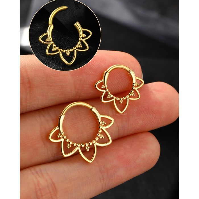 Epaisseur de la barre : 16 Gauge(1., 2mm) ; diamètre intérieur : 8/10 mm, une taille confortable pour votre piercing d'oreille. Septum Clicker Boucle D'oreille Anneau Pétales Helix Daith Piercing Design avant-gardiste : Orné de zircones scintillantes, notre bijou de piercing helix lotus allie élégance et brillance. Clicker Septum Daith Helix OUFER 16G Anneaux Septum Clicker Piercing Daith Acier Chirurgical 316L Nose Hoop Bleu Violet CZ Piercing Oreille Cartilage Pour Femme 8 Mm Bijou Piercing Lotus Zirconium TAILLE DU PIERCING OUFER SEPTUM oufer body piercing jewellery Vidéo de marchand, A PROPOS D'OUFER OUFER Anneau de nez septum 16G 316L acier inoxydable charnière segment clicker clair CZ pavé boucles d'oreilles cerceau Helix Tragus Daith piercing bijoux... Un excellent choix pour les amateurs de piercings Notre créole pour hélix est dotée d'un système de fermeture à clic sécurisé pour un ajustement parfait et sans accroc, sans glissement ni torsion. ACIER INOXYDABLE 316L · Epaisseur de la barre : 16 Gauge(1.2mm) ; diamètre intérieur : 8/10/12 mm, une taille confortable pour votre piercing d'oreille. · L... Il peut également servir de piercing daith, d'anneau d'hélix et de créole pour cartilage (selon la taille)., L'anneau de daith Anneau de septum en or : Chaque commande comprend un bijou de piercing pour septum Lotus de 8 mm. Facile à porter, elle reste bien en place pour un confort optimal tout au long de la journée Description du produit OUFER BODY PIERCING Polyvalente en toutes occasions : Que vous vous habilliez pour un festival, une soirée ou que vous ajoutiez une touche d'élégance à votre tenue quotidienne, cette boucle d'oreille créole en forme de lotus pour cartilage daith et hélix sublimera votre style sans effort.