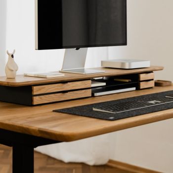 OAKYWOOD Petit tiroir modulable - Chêne/Base noire - Simple Bureau 5 Tiroirs 1 Porte En Bois D'acajou Massif Falkane 140 Cm... Tiroir Compatible étagère Bureau Oakywood Tiroir Modulaire Petit Format - Organisateur De Bureau En Bois Tiroir Bureau Bois Massif Oakywood Plus petit que son grand frère, il s’adapte parfaitement sous l’étagère de bureau tout en offrant suffisamment d’espace pour vos accessoires et petits objets du quotidien. Le bois massif garantit durabilité et beauté naturelle, tandis que la structure en acier poudré assure stabilité et résistance. Bureau en bois massif avec tiroirs VICTOR By Lema design Roberto Lazzeroni Les tiroirs sont disponibles en deux versions : simple et double, ainsi qu’en trois couleurs : chêne, noyer et chêne noir. Compatibilité parfaite avec l'étagère de bureau : ses dimensions et sa forme s’adaptent parfaitement à l'étagère en chêne – le tiroir se glisse aisément sous le bureau, formant un ensemble harmonieux et pratique. Compatible avec : étagère de bureau en chêne, tiroirs et organiseurs petits et grands – combinez les modules à votre guise et créez vos propres agencements. Organisation de l’espace de travail : les versions à un ou deux tiroirs offrent un espace pour petits objets, documents ou accessoires — pour un bureau ordonné et un esprit clair.