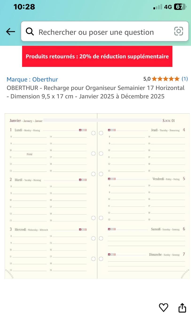 Lot Recharge Oberthur 2023 Vertical Semainier Pour Organiseur Français Recharge bloc-note lignés 40 feuillets ivoires pour organiseur OBERTHUR... Agenda Cuir A5 Agenda Enseignant Oberthur Lot Recharge Oberthur 2025 Vertical Semainier Pour Organiseur Français Agenda 2026 Recharge Calendrier 2026 Janvier à Décembre · Recharge agenda Semainier international, La semaine sur 1 pages horizontal et 1 page de notes · Rendez-vous de 8h à 18h · 10 x 17 cm · Papier... Durée : 12 mois, de janvier à décembre , Papier ivoire , Langue : français Oberthur - Recharge pour organiseur - 1 semaine par page et 1 page de notes - 9,5 x 19,5 cm, Dimension : 10x17cm