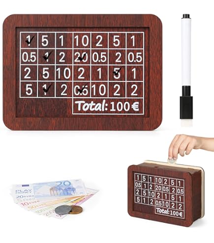 La tirelire est assez robuste pour résister à vos projets d'épargne Objectif épargne Adulte Enfant Salvadanaio Bambini Tirelire Bois Réutilisable 1000€ - Avec Objectifs D' Épargne - Coffre à Argent Adultes/Enfants Tirelire 5000 Economie Argent Description du produit tirelire avec compteur Les tirelires en bois peuvent motiver les enfants et ils sont plus encouragés à économiser lorsqu'ils voient de plus en plus d'argent s'accumuler dans leur tirelire. Fabriqués en panneau de peuplier solide, ils offrent un support fiable pour vos efforts d'épargne. Le meilleur de tout, ils sont réutilisables, vous permettant de profiter de l'épargne encore et encore Livré avec un stylo effaçable et soluble dans l'eau pour une réutilisation facile Développer des habitudes d'épargne : la tirelire en bois permet aux enfants d'économiser facilement de l'argent. SansRealmL Tirelire en Bois, Tirelire Vintage, Tirelire réutilisable... Matériaux de qualité supérieure : cette tirelire en bois respectueux de l'environnement est durable, pas facile à endommager. Un cadeau parfait pour les enfants et les adultes. Au cours de l'utilisation des enfants, ils développeront progressivement la conscience des économies d'argent pour les aider à développer une bonne habitude d'épargne Tirelire numérique en bois - Réutilisable - Stylo effaçable Spécification : Nom : Matériau de la tirelire réutilisable : Bois - Couleur : Marron - Dimensions : Dimensions approximatives : 14,5 x 20 x 7,5 cm L'assemblage est très simple et se fait en quelques minutes et en quelques manipulations.