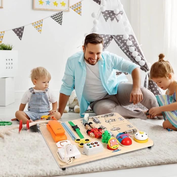Jeu de société occupé Montessori - COLAXI - Apprentissage motricité... Jouets éducatifs pour enfants : améliorez la motricité fine de la coordination œil-main des enfants. Produit : interrupteur d'accessoire de bricolage pour enfants avec ventilateur. Busy Board Montessori âge 1 An Milageto 4x Montessori Occupé Conseil Motricité Fine Multifonctionnel DIY Tableau Occupé Montessori Jolis cadeaux : cadeau d'anniversaire/vacances parfait pour les enfants garçons de 4 à 8 ans. Jouet éducatif pour enfants : ce jouet sensoriel Montessori encourage les enfants à profiter de leur sens et à apprendre la motricité. Planche occupée pour les tout-petits : les jouets éducatifs Montessori aident les enfants à développer leur motricité fine qui permet aux enfants d'améliorer leurs capacités de doigts et leur... Description du produit Matériel de Busy Board Le bouton de manteau accessoire de planche assidu peut développer la capacité pratique de bébé, sa capacité à prendre soin de lui-même et sa motricité fine. Milageto Jouet De Planche Occupé Avec Interrupteur De Lumieres Jouet De Voyage Avec Bouton Competence Motrice De Base Jeu Amz B0