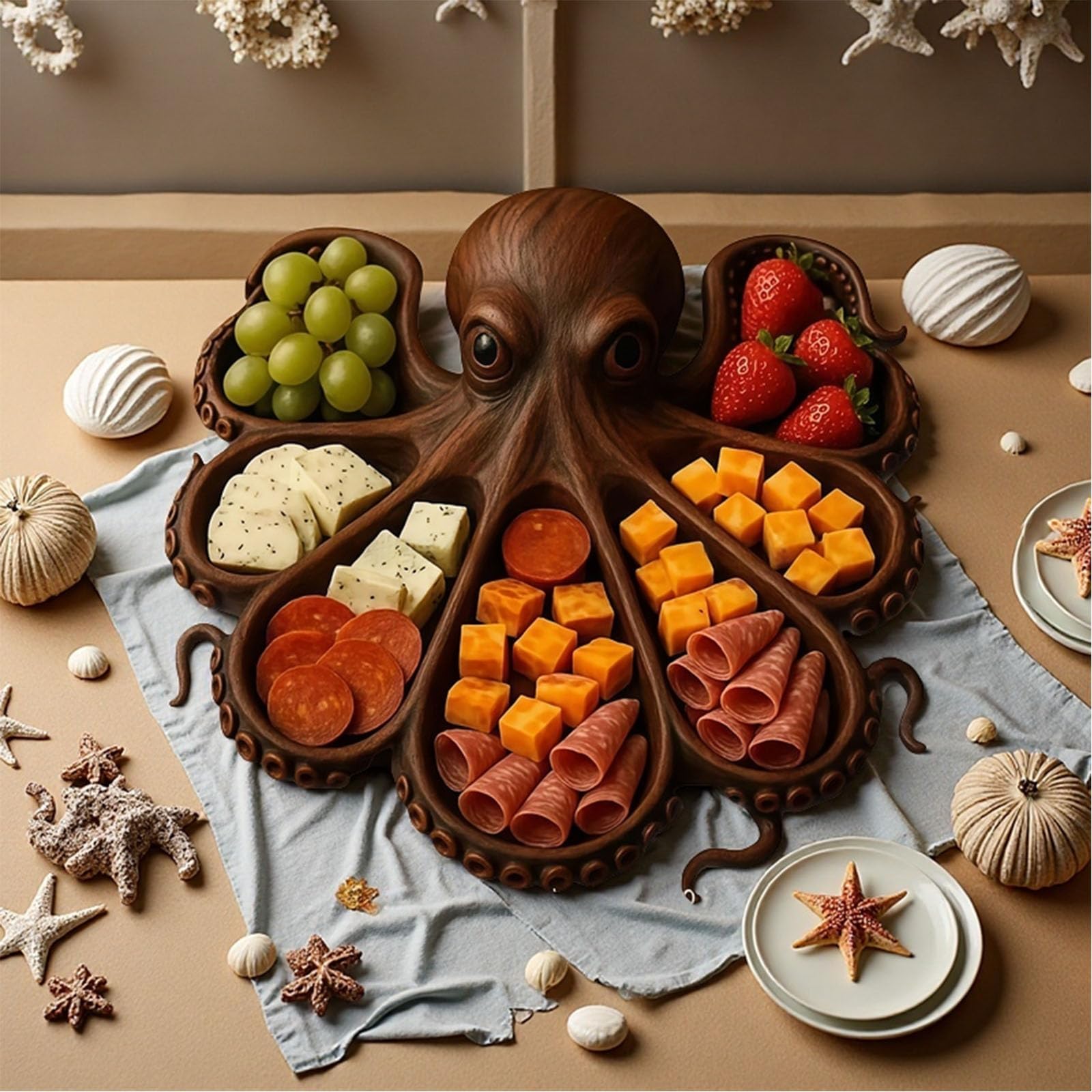 Cadeau Cuisine Original Octopus Charcuterie Board, Wooden Serving Tray, Large Octopus Shape For Cheese, Meat And Fruit, A Novelty Gift For Seafood And Beach Lovers Planche Charcuterie Why I Switched to a Large Wood Charcuterie Board: My Expert Experience 50-Turtle Serving Bowl and Blue Serving Platter View A- Amy Kovats... Idéal comme assiettes de dîner ou plateau à fruits, ce serviteur ajoute du charme à toute décoration de table. Parfait pour une utilisation à domicile ou lors d'occasions spéciales telles que des mariages, anniversaires, showers de mariage ou pendaisons de crémaillère. Rustic Turtle Design: This wooden charcuterie board features a charming turtle shape that brings a rustic and playful element to your dining setup, perfect for nature lovers or themed kitchen and table decorations Description du produit Planches À Charcuterie Natural Wood Craftsmanship: Carefully carved from quality wood, the smooth and fine detailing each board is visually appealing and tactile, providing both functionality and a warm, earthy decorative feel Versatile Use Platter Style: Ideal for serving cheese, fruits, snacks, or appetisers, this versatile turtle tray functions as a dinner plate or grazing board, adding artistic flair to gatherings, events, or everyday use Perfect Gifting Choice: A delightful gift idea for birthdays, weddings or housewarmings, this turtle-shaped charcuterie platter blends functionality with creativity, making it ideal for loved who enjoy entertaining guests Sturdy Natural Wood Build: Crafted from high-quality solid wood for lasting performance, this serving tray a reliable and eco-friendly for cheese, fruits, desserts, and other delightful charcuterie items