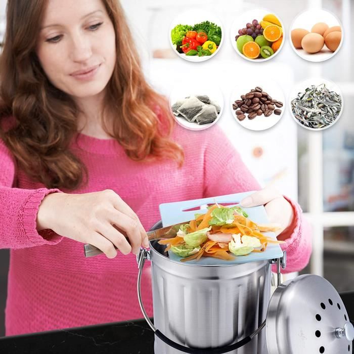 -Le couvercle avec des pour empêcher déchets d'être et d'émettre une odeur particulière, ce qui affectera la propreté poubelle pièce pour la cuisine. Poubelle de cuisine : le couvercle hermétique et remplaçable fonctionnent ensemble pour piéger et contrôler naturellement, de sorte que votre bac à compost de cuisine facilement placé votre plan de travail ou partout où vous en avez besoin. Poubelle pour cuisine : fabriquée en matériau de haute qualité et sûr, sûre, couvercle de poubelle avec poignée, pas facile de salir la cuisine et mains, poubelles pour cuisine -La conception poignée portable rend ce bac à compost de cuisine pratique à utiliser et à déplacer poubelles pour la cuisine. RED FACTOR Deluxe Seau Copost Inodore en Acier Inoxydable pour Cuisine L'odeur de votre poubelle de cuisine vous agace ? Avez-vous une poubelle pratique et ? Si ce n'est pas fait, découvrez composteur de cuisine, fabriqué en matériau robuste. - Un composteur d'intérieur spécialement conçu est . Tbest Bac à compost Poubelle à Compost, Seau à Compost D'intérieur en... le bac à compost de cuisine est applicable cuisine, aux portes d'armoires et à d'autres endroits, poubelle en acier inoxydable des packages 1 x bac à compost Caractéristiques -Taille : 30,00 x 18,00 x 18,00 cm/11,79 x 7,07 x 7,07 pouces poubelle de cuisine -Matériau : Poubelle de cuisine en acier inoxydable -Informations le produit : Poubelle en acier inoxydable -Couleur : Poubelle de cuisine argentée -Le bac à compost de cuisine est fabriqué en matériau solide et utilisé pendant une longue période comme petite poubelle. Conteneur à déchets : fabriqué en matériau de haute qualité et stable, robuste, et compact, facile à utiliser, poubelle de cuisine Composteur Cuisine Design Facile Nettoyer Poubelle De Compost De Cuisine, Seau à Compost Avec Filtration Des Odeurs, Poubelle Intérieure De Compost Facile à Nettoyer, Avec Poignée De Transport Composte De Cuisine Cette poubelle compost élégante, dotée d'un couvercle en forme de dôme, est idéale pour être placée sur le comptoir de votre cuisine. Elle allie esthétique et fonctionnalité, ajoutant une touche d'élégance à votre décor tout en offrant un accès facile aux déchets organiques Poubelle en acier inoxydable : utilisée comme poubelle pour , pour placer déchets et garder votre maison organisée.