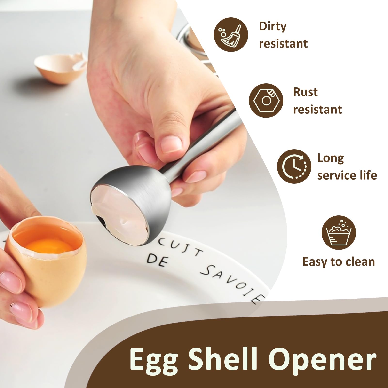Design Précis et Pratique : Le Toqueur Oeuf à la coque en acier inoxydable permet d'ouvrir proprement la coquille d'un œuf à la coque ou dur, offrant une coupe nette grâce à son mécanisme de vibration contrôlé. Notre ouvre coquille oeuf dur permet de créer des coquilles parfaitement coupées pour servir des desserts ou des créations culinaires élégantes typiques de la gastronomie française. Utilisez également les coquilles comme mini-pots pour faire pousser des graines Une fois la poignée tirée, l'outil soulève le haut de la coquille sans endommager l'œuf, vous offrant une coupe nette. Grâce à son design ergonomique, il est confortable à tenir même pendant des sessions prolongées de cuisine. Coupe Oeuf Dur Inox 2 Pièces Toqueur Ouvre Oeuf à La Coque, Coupe Oeuf En Acier Outil Pour Couper œuf Facilité d'Utilisation : Ouvrez vos œufs en toute simplicité grâce à un mécanisme à vibration de Ouvre de Coquille D'oeuf. Cet ouvre-œuf est conçu pour les amateurs de cuisine qui recherchent une méthode simple et rapide pour préparer des œufs parfaitement coupés sans effort. L'outil est léger, facile à manipuler et compatible avec le lave-vaisselle pour un entretien simplifié. Utilisez-le pour des créations culinaires comme des desserts élégants ou des mini-pots pour des graines. Élégant et Pratique : Son coupe oeuf à la coque design compact et moderne s'intègre parfaitement dans votre cuisine. Ce système facilite l'usage quotidien et vous permet d'éviter le désordre souvent lié à l'ouverture manuelle des œufs. Que vous soyez un chef à la maison ou un passionné de gastronomie, ce coup-œuf à la coque ajoutera de la simplicité et de l'élégance à vos préparations culinaires. Découvrez notre coup-œuf en acier inoxydable, un outil pratique et élégant pour découper vos œufs à la coque et œufs durs avec une précision remarquable. 2 Pièces Toqueur Ouvre Oeuf à la Coque, Coupe Oeuf en Acier... Il suffit de tirer doucement sur la poignée pour que le mécanisme s'active et crée une ouverture nette sur la coquille. Un ustensile utile pour un brunch convivial, une solution originale pour impressionner vos invités avec une présentation raffinée. Ouvre Oeuf Coupe-Oeuf En Acier Inoxydable - Ouvre-Oeuf à La Coque Pratique | Pour Oeufs Moulets, Durs | Accessoire Cuisine Malin Coupe Oeuf Facile Nettoyage