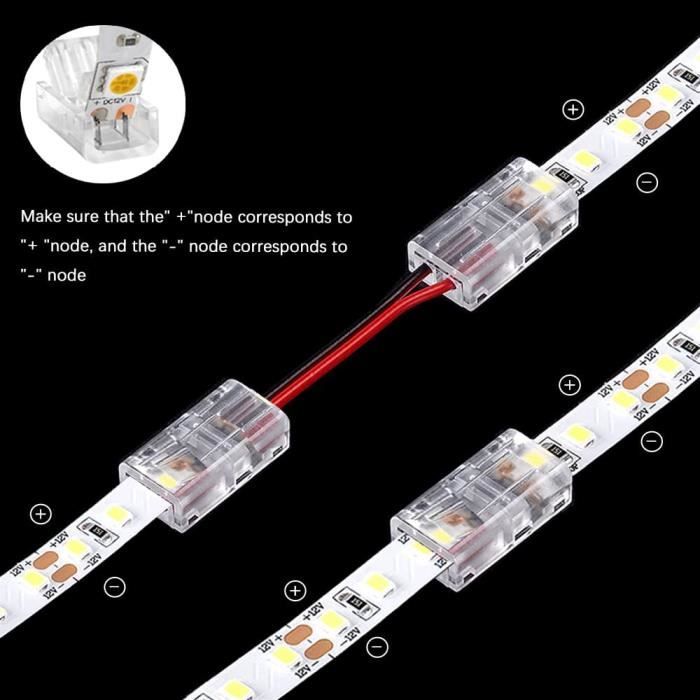 Bande Led Cob De 3 M - Intérieur Non Étanche - Usb Flexible Cob - 5 V... Adaptation universelle de la tension : les connecteurs de lumière LED polyvalents maintiennent des performances fiables sur les systèmes basse tension sans restrictions de compatibilité sur les configurations de bandes COB. Optimisation de l'éclairage intérieur : ces connecteurs de bande LED de 8 mm facilitent les configurations rapides d'armoire de cuisine, d'escalier ou d'éclairage d'accentuation avec des boîtiers en polymère résistant à l'humidité pour les environnements domestiques. Connecteur Ruban Led Omabeta Connecteurs De Bande LED COB Connecteurs De Bande LED Sans Raccord Ruban Led Bornes à haute conductivité : les noyaux en cuivre étamé de qualité supérieure dans ces connecteurs LED à 2 broches garantissent une transmission électrique stable tout en empêchant l'oxydation pour une performance d'éclairage sans scintillement. Bande Led Cob À Piles - 2 M - 640 Led - Intensité Variable - Blanc... Matériau : plastique et cuivre., Couleur : transparent. 10mm Connecteurs 3 Broches Sans Soudure Fil pour Bande LED - Achat