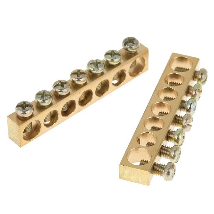 Les trous de câblage de cette barre d'extrémité sont raisonnablement disposés et uniformément espacés, avec un diamètre de trou de 6,50 mm, ce qui vous permet de visser facilement les vis, facilitant ainsi l'insertion et la fixation des fils, réduisant efficacement les étapes encombrantes du processus de câblage et améliorant l'efficacité du travail. Manchon laiton droit PEHD 63 Mâle 2 (50/60) - ACS 16 Bar - Arco Connexion stable : le siège de barre omnibus terminal adopte une bonne structure. Fil De Laiton Mise à La Terre Options For Busbars - Storm Power Components Bornier Pour Mise à La Terre Câblage pratique : le bornier adopte une structure de pont, ce qui rend le processus de câblage facile et détendu. Installation stable : le siège inférieur de la barre omnibus adopte une bonne structure de sertissage et un dispositif de fixation, de sorte que les fils peuvent être fermement maintenus dans le trou de câblage après l'accès, et ne sont pas faciles à desserrer par les vibrations ou la force extérieure. ETO- Barre de terre 10Pc Barres de Mise à la Terre 10 Pièces 7 Trous... La petite taille maximise l'efficacité de l'espace dans les environnements électriques bondés Caractéristiques : Matériau : boîtier en plastique, bornes en cuivre. MECCANIXITY Lot de 3 bornes de terre, 10 positions à vis en laiton, bornier de terre 8 x 12 mm pour équipement électrique, boîte de distribution, blanc : : Outils et BricolageCette barre de terre terminale est un composant essentiel dans les systèmes électriques conçus pour fournir un point commun pour la mise à la terre de plusieurs circuits électriques, couramment utilisés... Largement utilisé : la barrette de raccordement a une large gamme d'applications, non seulement adaptée pour les boîtes de distribution PZ30 courantes, mais également largement utilisée dans tous les types d'armoires de commande, systèmes d'éclairage et autres équipements électriques qui nécessitent un accès à la terre ou à la ligne neutre. Cette méthode de sertissage solide améliore non seulement la fiabilité de cette barre neutre en forme de pont, mais améliore également considérablement la sécurité du système de circuit, évitant efficacement les risques de sécurité causés par un mauvais contact ou une délogement du fil. Couleur : bleu (fil neutre), vert (fil de terre). Caractéristiques : Bon matériau : la coque en plastique de la barre d'extrémité et les bornes en cuivre intégrées lui confèrent une bonne conductivité et une bonne résistance à la corrosion. La structure de sertissage et le dispositif de fixation peuvent garder le fil fermement dans le trou de câblage après qu'il est connecté, et il n'est pas facile à desserrer en raison des vibrations ou de la force externe, ce qui améliore la sécurité du système de circuit et évite efficacement les risques de sécurité causés par un mauvais contact ou la perte de fil