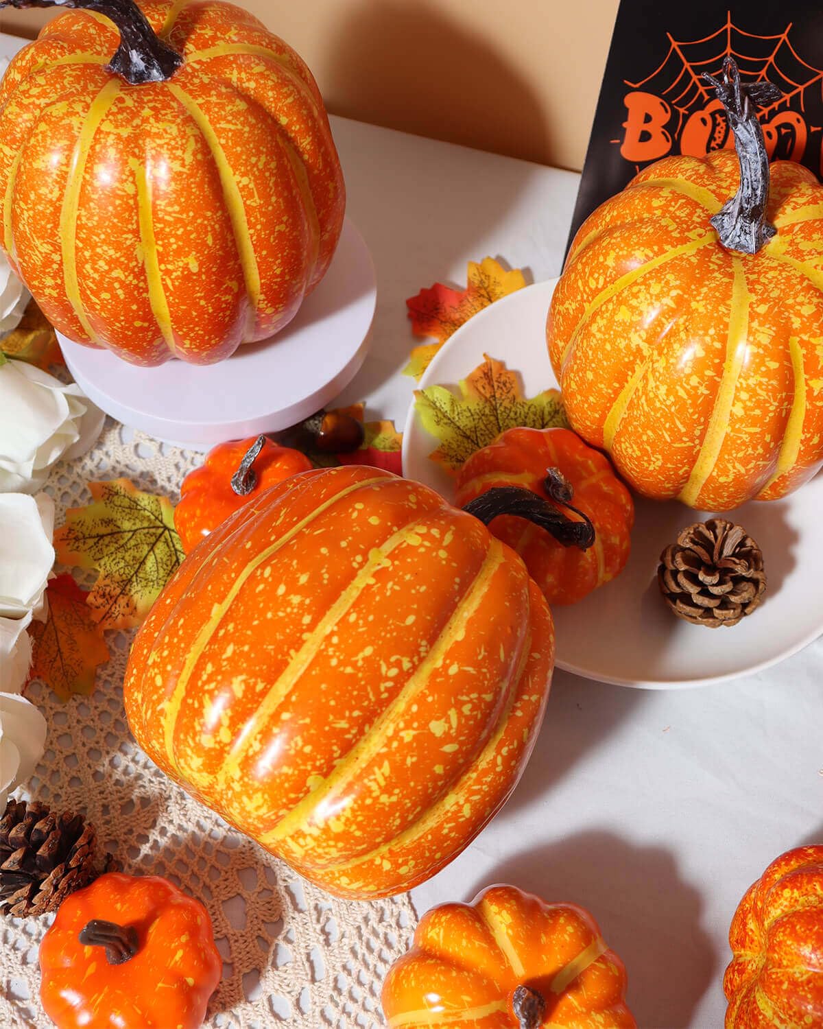 Décoration Citrouille Plastique Orange Guirlande Lot De 4 Citrouilles En Plastique Orange Moyen De 15,2 Cm Pour Guirlande Citrouille Artificielle Lot De 4 Maxi Cordes à Sauter, Longueur 4 M, Couleurs Assorties Fabriques En France Lot de 2 fleurs artificielles pour décoration de table de mariage... Facile à installer : le design léger le rend facile à accrocher et à repositionner, ce qui facilite la création d'un effet d'affichage. Taille : 1 chaîne de pendentifs en forme de citrouille de 51 cm de long, 1 chaîne a 4 citrouilles, et la taille de la citrouille est de 8 x 6 cm. Affichage polyvalent : parfaites pour une utilisation en intérieur et en extérieur, ces cordes décoratives en forme de citrouille améliorent les espaces de jardin, les cours et les salles à manger offrant une transformation saisonnière rapide sans installation compliquée Matériau : ces citrouilles sont fabriquées en plastique pour résister à l'environnement extérieur et maintenir une apparence lumineuse tout au long de la saison. Matériau durable : fabriqués à partir de plastique résistant aux intempéries, ces légumes artificiels conservent leur couleur orange vive tout au long de la saison et résistent aux conditions extérieures tout en conservant leur attrait visuel Pour une installation facile : le design léger permet une suspension et un repositionnement sans effort vous permettant de créer de beaux arrangements en quelques instants sans outils ou équipement spécial pour diverses configurations décoratives Détails du lot : chaque paquet contient 4 cordes mesurant 51 cm de long avec 4 citrouilles par ficelle, chaque citrouille mesure 8 x 6 cm offrant une grande décoration pour créer de superbes affichages visuels dans tout votre espace Les Légumes Locaux Saisonniers Sont La Citrouille D'orange Et Les...