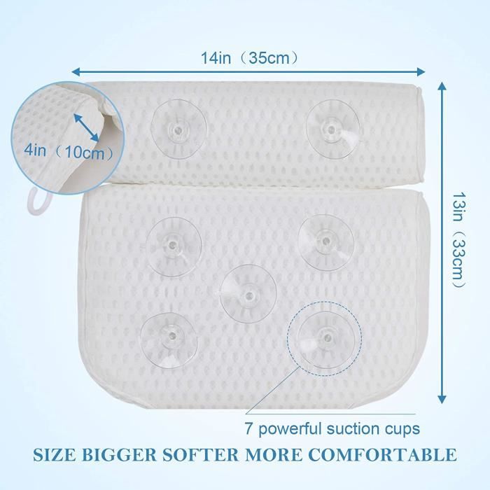 Tissu Mesh Respirant Oreiller Baignoire Oreiller De Bain YIYADI - Ergonomique 4D Mesh - 6 Ventouses Oreiller De Bain Pour Baignoire Tissu 4D Air Mesh Respirant TWBEST Coussin de Bain,Oreiller de Bain avec Ventouses,Oreiller de Oreiller de Bain, Coussin Baignoire, Oreiller de Baignoire, Coussin de... 🛁【Un coussin de bain véritablement ergonomique】Conçu pour épouser parfaitement la forme de votre tête et de votre cou,notre coussins de bain offre un confort et une détente maximum. Son design floral s'adapte superbement à votre silhouette,soutenant votre tête,cou et épaules pour soulager les muscles fatigués après une longue journée. 🧼【Facile à nettoyer et à sécher rapidement】Oreillers de bain Livré avec un sac à linge Accessoires pour baignoire,Il vous suffit de le plonger dans de l'eau froide et de le laver délicatement après usage,sans besoin de repassage. Matelas baignoire adulte plateau baignoire Grâce à ses crochets,le coussin peut être suspendu facilement pour sécher à l'air,que ce soit sur un porte-serviette dans la baignoire ou sous la douche 🧽【Tissu 4D-Mesh innovant】Construit avec une technologie de maillage aéré unique,notre coussin bain est non seulement facile à nettoyer,mais également respirant et absorbant,garantissant un séchage rapide. Il prévient la formation d'odeurs,de moisissures ou de bactéries. Coussin de Bain - SPA - Oreiller 4D - Antidérapant - Ergonomique...