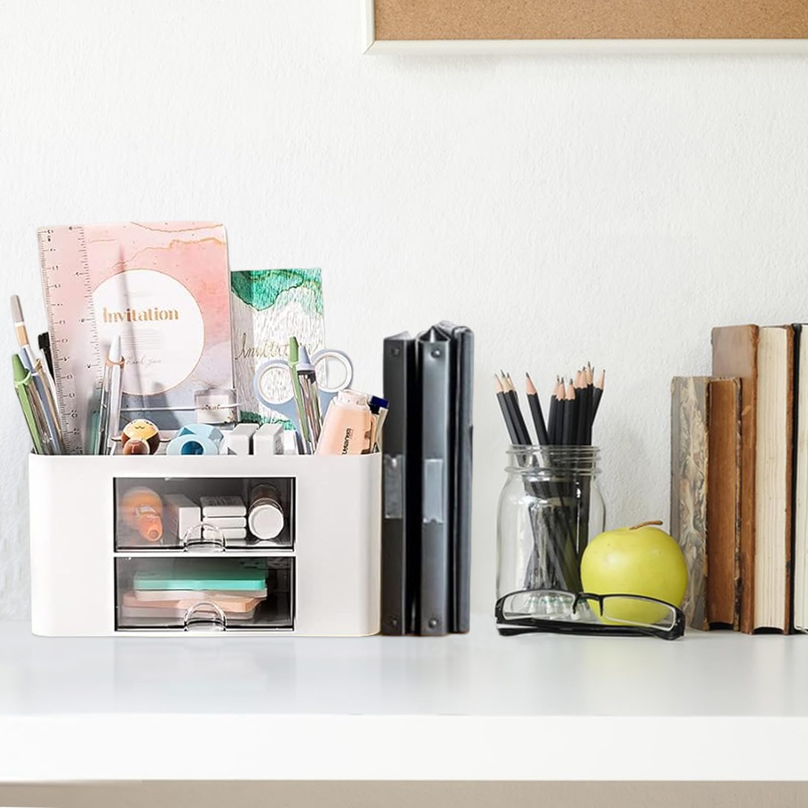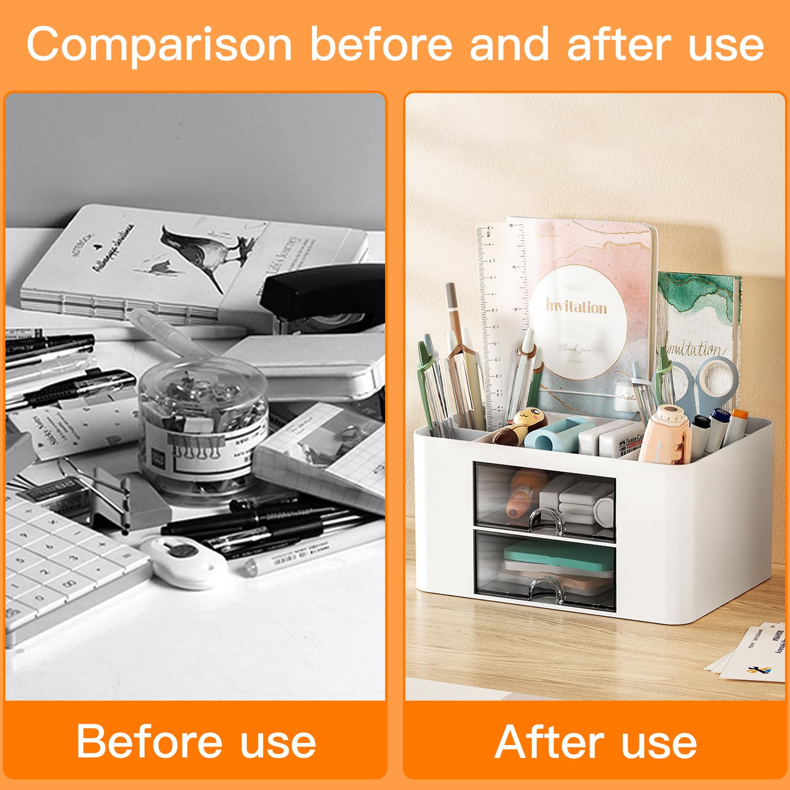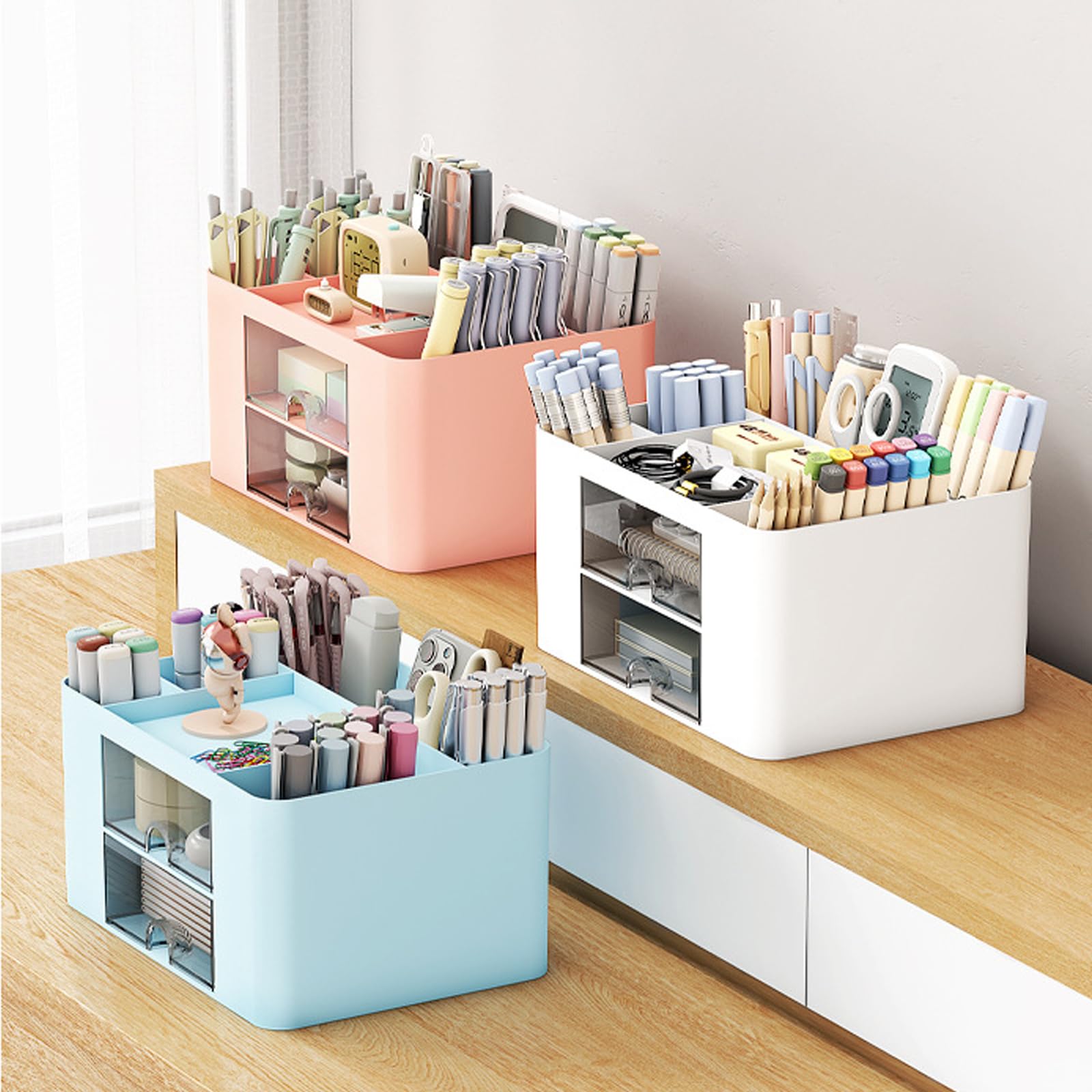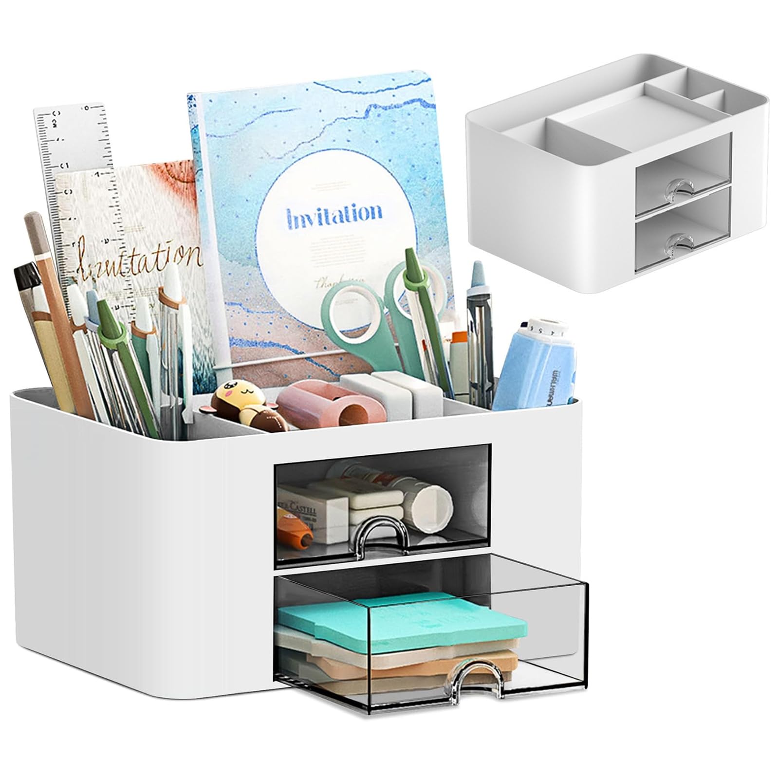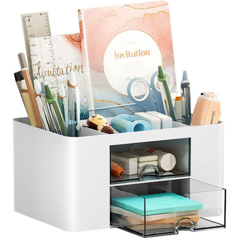 Les stylos, les trombones, les clés, les téléphones portables, le maquillage et les bijoux peuvent y être rangés, tout en gardant votre bureau propre et élégant. Organisateur Multifonctionnel école Maison Rangement Bureau -Organisateur De Bureau En Plastique -Porte Stylo 5 Compartiments 2 Tiroirs Coulissants CARACTÉRISTIQUES Il offre suffisamment d'espace pour ranger les affaires de table sans prendre trop de place. L'organisateur de bureau est fabriqué en plastique robuste, avec des bords lisses et sans bavures pour une belle apparence. Le porte-stylos de bureau est robuste et durable, il peut être utilisé pendant longtemps.La boîte organisatrice de table est divisée en trois niveaux, chaque compartiment ayant une taille et une fonction différentes PRODUCT LIST : Vous recevrez un organisateur de bureau multifonctionnel qui gardera votre bureau bien rangé et vous fera gagner du temps dans la recherche d'objets. MATÉRIAU DE HAUTE QUALITÉ : Cet organisateur de bureau est fabriqué en plastique de haute qualité, robuste et durable, avec des bords lisses sans bavures, des coins arrondis, une utilisation sûre, pas besoin de s'inquiéter des rayures sur la peau. HEG Organisateur De Comptoir De Cuisine Plastique Détachable... SPÉCIFICATIONS Matériel: Plastique Taille du Paquet: comme indiqué Couleur : blanc CONTENU DU COLIS 1 x Organisateur de bureau avec tiroir Fini le désordre, rangement facile. Idéal pour obtenir un aménagement de bureau net et organisé. Lostwry 4 Pièces Organisateur de Bureau, ultifonctionne Support de Les tiroirs faciles à ouvrir permettent non seulement d'organiser les petits objets, mais aussi de les protéger de la poussière Applications : Idéal pour le bureau, l'école, le salon, le dressing, la salle d'étude, la chambre à coucher, la chambre d'enfant, la salle à manger et d'autres espaces. Utilisation simple et intuitive.