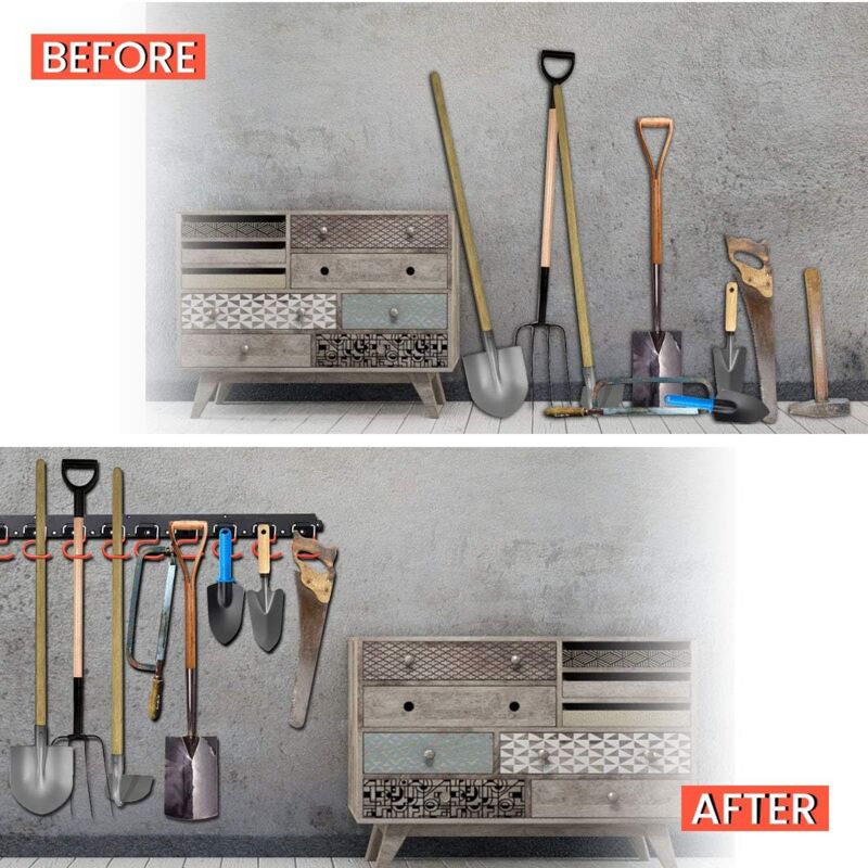 PriZooty Support de balai extractible avec crochet coulissant réglable à double rangée Support de rangeent ultifonctionnel coulissant pour balai et serpillère, pour cuisine, placard... Placard à Balais Support De Rangement Extractible Pour Serpillère Et Balais, Organisateur De Rangement Extractible Pour Buanderie, Garage, Outils De Jardin Pour La Maison, La Cuisine, Le Jardin (56 Cm - 20 Crochets Rangement Buanderie Organisation Modèle : supports à linge extractibles / porte-balais extractible DétailsMatériau : aluminium + ABSCouleur : noirTaille : 26 cm/10,23 po - 8 crochets, 31 cm/12,20 po - 10 crochets, 36 cm/14,17 po - 12 crochets, 41 cm/16 crochets, 46 cm/18,11 po - 16 crochets, 51 cm/20,07 po - 18 crochets, 56 cm/22,04 po - 20 crochetsStyle : moderne et simpleNombreuses applications : l'organisateur de rangement pour balais est conçu pour contenir divers objets ménagers. 【Crochet robuste】: Organisateur suspendu les résultats expérimentaux montrent que la capacité de charge dépasse 30 kg, ce qui signifie qu'environ 5 à 10 paires de balais et de serpillères, il peut toujours glisser en douceur, l'organisation de la maison doit avoir pour les outils de jardinage à l'extérieur ou dans le hangar Support de balai et serpillière, 1 pièce, organisateur de serpillère, étagère de rangement de... 【Matériau solide】: Étagère de garage extensible en alliage d'aluminium et acier durable, elle fonctionne toujours de manière stable après des dizaines de milliers de tests de poussée et de traction, durable et longue durée de vie 【Organisateur de rangement coulissant pour placard】: Les crochets de suspension pour organisateur de balais et de serpillères sont suspendus longitudinalement, peuvent utiliser efficacement l'espace étroit entre les abris à outils, vous permettant d'ajuster la distance entre les crochets de garage en fonction de différents outils, vos besoins pour maximiser l'utilisation de l'espace 【Organiseur d'outils Installation facile】: L'installation du cintre organisateur de rangement coulissant pour placard est très simple avec des instructions d'installation, qui conviennent à différentes surfaces d'installation, veuillez suivre les instructions claires étape par étape rangement de garage bacs pour cuisine, salle de bain, garage, buanderie, placard à balais, rangement de lavage et même fonctionne à l'extérieur ou dans le hangar pour vos outils de jardin