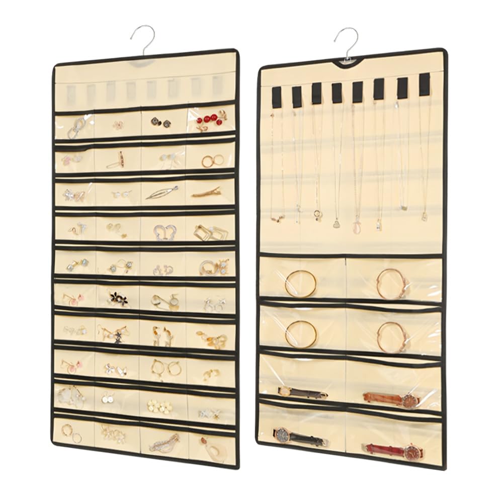 Utilisation multifonctionnelle : ce sac de rangement pour bijoux peut contenir des boucles d'oreilles à clous, des boucles d'oreilles, des crochets d'oreilles, ainsi que des pendentifs, des boucles d'oreilles à clous et des boucles d'oreilles coûteuses. Organisateur Bijoux Mural MengH-SHOP Organiseur De Bijoux à Suspendre Organisateur De Rangement Pour Lunettes De Soleil En Feutre Organisateur Pliable Au Mur Pour Boucles D'Oreilles Bagues Bracelets Colliers (40 X 50cm Idée Cadeau Femme Vous en avez assez du désordre sur votre bureau ? Vous êtes frustrée de ne pas trouver les bijoux dont vous avez besoin au moment de partir ? Vous avez peut-être besoin d'une boîte de rangement pour organiser et ranger vos boucles d'oreilles et vos bijoux. SONGICS Présentoir de bijoux ural, Porte-bijoux, Rangeent... L'espace de rangement supplémentaire nous permet de collecter et de stocker une grande quantité de boucles d'oreilles. Décoration tendance : ce support de rangement pliable pour bijoux est parfait pour être accroché aux portes, aux murs ou aux armoires, créant un effet visuel élégant et classique. Organisateur de Bijoux avec Grand Tiroir en Bois, Porte-Bijoux de Table... Ce rangement mural pour boucles d'oreilles peut accueillir plusieurs paires de boucles d'oreilles ou d'oreilles percées. Vous pouvez l'accrocher au mur, à une porte ou à une armoire pour garder votre bureau bien rangé, afin de trouver vos boucles d'oreilles en un clin d'œil tout en gagnant beaucoup de place. Il offre un espace de rangement et d'exposition idéal pour vos objets précieux. Rangement bijoux mural doré • Bijou perché Dimensions : Le rangement mural pour boucles d'oreilles mesure 57 x 35 centimètres, chaque panneau en feutre pouvant contenir 2 paires de boucles d'oreilles. Cadeau parfait : ce présentoir à bijoux est un cadeau idéal pour de nombreuses occasions, telles que la Saint-Valentin, les anniversaires, la fête des mères, Noël, Halloween, etc.