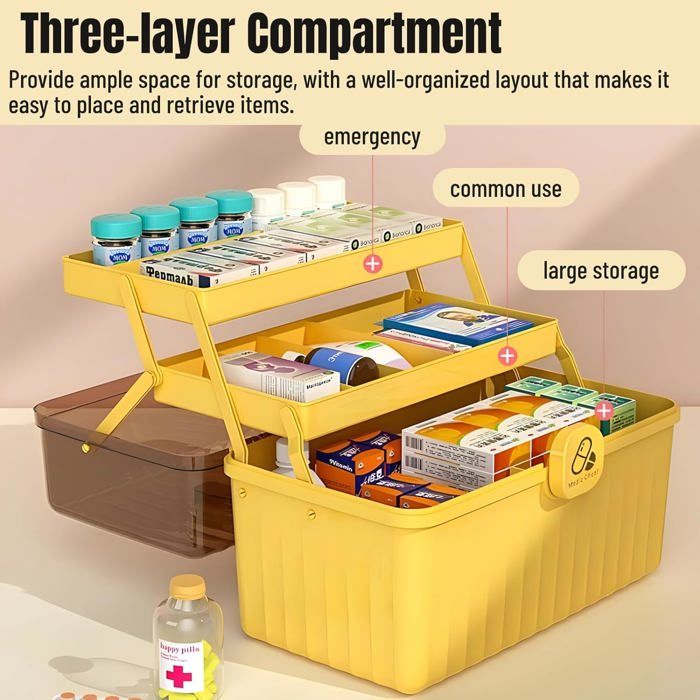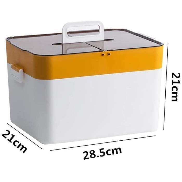 Il est également facile à nettoyer pour un entretien sans tracas. Remarque : Les mesures étant prises à la main, les tailles indiquées peuvent varier de 1 à 3 cm. ORGANISATEUR DE PILULES PORTATIF: Le compartiment amovible à 6 cases intégré dans le couvercle de cette boîte de rangement permet de transporter facilement vos médicaments essentiels. La taille compacte le rend facile à transporter, vous permettant de prendre vos médicaments essentiels n'importe où. Boîte Portable 12l Boîte à Pharmacie Portable AouiSton - 3 Étages, Poignée, Verrouillable - Rangement Médicaments Maison/Voyage Range-medicaments Grande Capacité Utilisations polyvalentes : cette boîte multifonction peut servir d'organisation médicale, support de kit de premiers secours ou solution de rangement pour fournitures de bureau, papeterie, outils de couture, etc. Stockage sécurisé : son design gris translucide protège les contenus de la lumière, empêche l'oxydation et garantit que vos médicaments restent puissants et efficaces pendant de longues périodes. Boîte À Pharmacie 2 Niveaux Boîte À Médicaments Plastique Boîte De... MATÉRIAU RÉSISTANT ET FACILE À NETTOYER: Fabriquée en plastique durable, cette boîte de rangement résiste à une utilisation quotidienne. Caractéristiques : Grande capacité : mesure 38 x 15 x 25 cm, notre boîte de rangement de médicaments à 4 étages offre un grand espace pour la catégorizie et le stockage des médicaments et des fournitures médicales. Son design compartimenté simplifie le classement pour un accès rapide Organisateur Pilules Portable Boîtier Anti-humidité Pilules Organisateur Médicaments 3 Étages - Boîte De Rangement Transparente Pour Pharmacie Familiale - Portable Avec Poignée Boite A Medicament Boite Pharmacie Boîte De Rangement À Médicaments En Plastique, Boîte De Premiers Soins... Son format compact est idéal pour les voyages et les déplacements