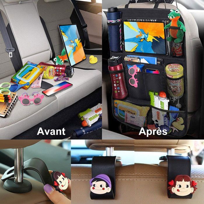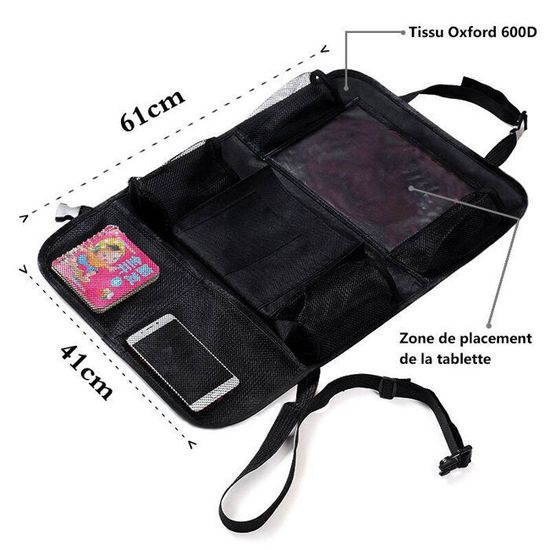 Chaque tapis de protection possède un porte-iPad. 2Pcs Organisateurs de Voiture Kick Mats, YOOFAN Protection Arrière 🚗 Ipad PVC Transparent: Organisateur de voiture avoir pochette en PVC transparent, convient aux tablettes iPad jusqu'à 9,7 pouces, les enfants de voir le film. Kick Mats Organisateur 11 Poches Organisateurs De Voiture Kick Mats, Protection Arrière Protection Siège Auto Enfants Support iPad pour écran tactile Le produit est livré avec 2 pack d'organiseur de siège auto. Vos enfants n'auront plus aucun problème à regarder des vidéos en voiture. Organisateur de voiture multifonction : dimensions : 60 x 40 cm, le protège-siège auto est assez grand. Les housses de siège arrière de voiture ont de... Convient à toutes les voitures conventionnelles. Fabriqué en polyester 600D pour assurer la durabilité et éliminer les étirements. Vous pouvez mettre les boissons, parapluies, etc dans les sacs en filet des deux côtés, et mettre les livres, magazines, etc dans la poche dessus zippée.🚗 Facile à nettoyer: Organisateur de voiture est fabriqué en 600D Oxford imperméable et durable Organisateur de voiture de plus grande taille La taille de chaque tapis est de 61., 5 x 41., 5 cm. Facile a Nettoyer Notre organisateurs de voiture est fabriqué dans un matériau Oxford imperméable et peut être facilement nettoyé avec une éponge ou un chiffon humide, les chaussures boueuses de vos enfants ne vous dérangeront plus. 🚗 Organisateur de Voiture: Couverture complète du dossier des sièges avant, évitez que vos enfants barbouiller les sièges avant et également réduire l'usure des sièges. Protection optimale pour vos sièges Ce tapis protège l'arrière de vos sièges avant des pieds sales des,Ils préservent vos sièges contre l'usure et les taches - vos sièges sont ainsi protégés contre les taches laissées par les pieds sales des, pour un voyage sans souci. Propose des divertissements pour les gens pour des voyages plus longs.
