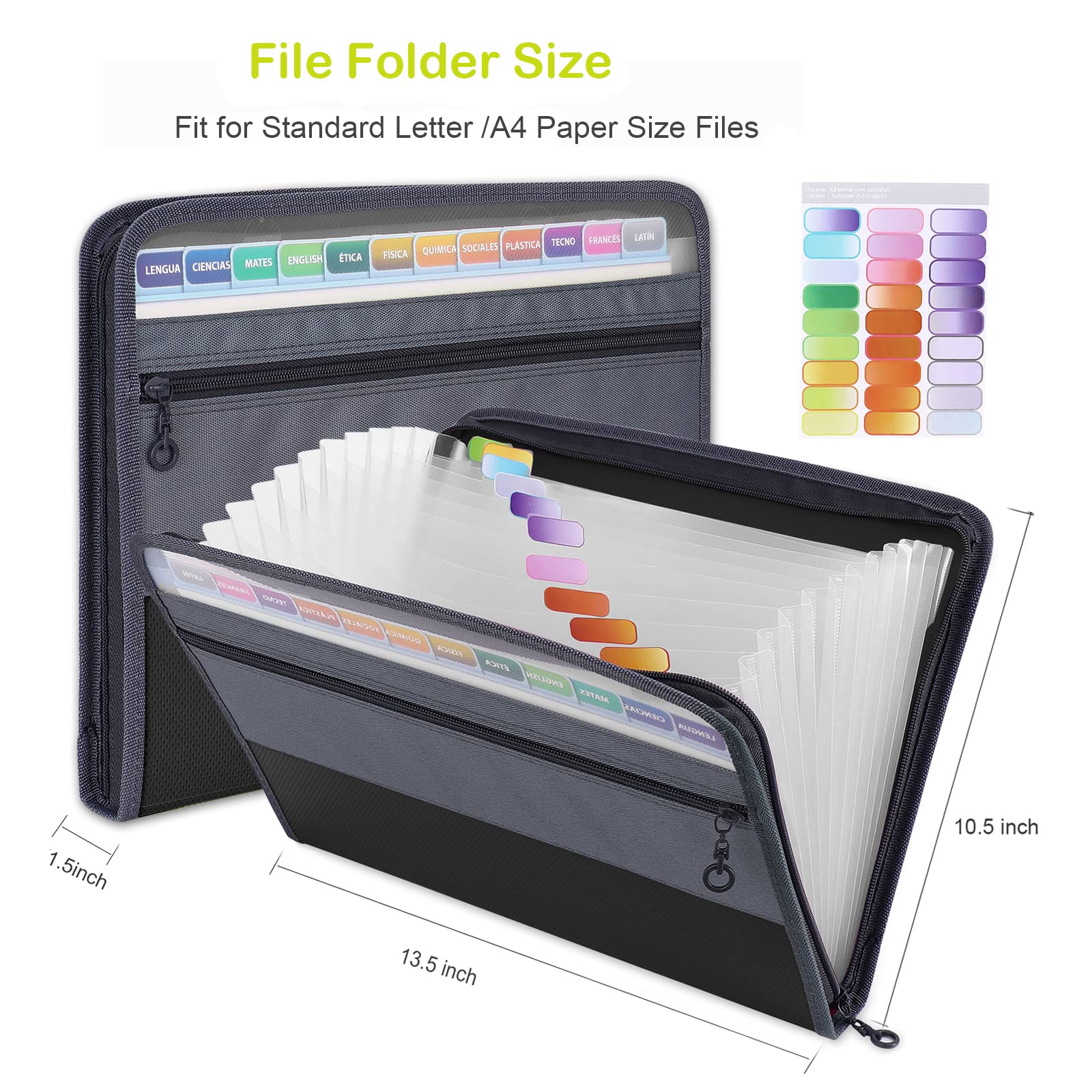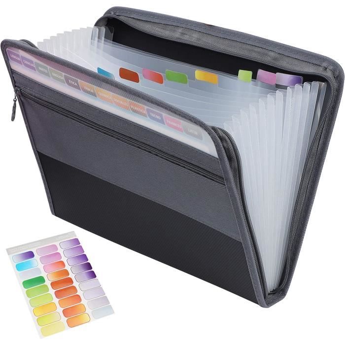La sangle renforcée rend le bord lisse et durable Porte-documents Accordéon Zippé Noir H4D Acordian Organiseur De Fichiers Accordéon Extensible à 13 Poches Avec Fermeture éclair Pour Documents, Format A4, Transparent Dossier Accordéon Extensible Noir Personnalisez les onglets pour une meilleure organisation avec ce porte-documents H4D A4 à 13 pochettes. Haute capacité : le dossier extensible est parfait pour les documents au format A4. 13 poches individuelles, chaque poche peut être étendue jusqu'à 1 1/8 pouces, elle est suffisamment grande pour garder tous vos documents importants en sécurité Le porte-documents accordéon zippé aide à garder vos fichiers en sécurité à l'intérieur sans vous soucier de perdre des papiers importants n'importe où Dossier à 13 poches : les dossiers extensibles à 13 poches sont un excellent moyen de ranger tous ces documents volants. DOSSIER EXTENSIBLE ORGANISATEUR accordéon extensible EUR 17,53... Peut contenir jusqu'à 300 feuilles de papier A4., Fermeture éclair fluide : l'organiseur de fichiers accordéon H4D dispose d'une fermeture éclair unidirectionnelle qui est pratique pour accéder et ranger les documents. Fermeture éclair lisse, gardant le contenu protégé et sécurisé Poche avant en maille avec fermeture éclair : une grande poche en maille avec fermeture éclair ajoutée sur le devant, conçue pour contenir plus de fournitures scolaires de bureau comme des stylos, une gomme, une calculatrice, ou des reçus, des factures et des papiers de rangement avec cet organiseur extensible Extensible Pochettes Pour Documents 13 Poches,A4 Trieur Document Avec Fermeture Glissireorganisateur De Documents Porte Documents De Dossier Daccordon Avec Support De Poche Avantgrise 65665839 Fermeture éclair unidirectionnelle pour que vos papiers restent en place Léger, flexible avec une haute résistance en plastique PP résistant aux chocs et à l'eau pour protéger vos documents contre les dommages causés par l'eau et les déchirures.