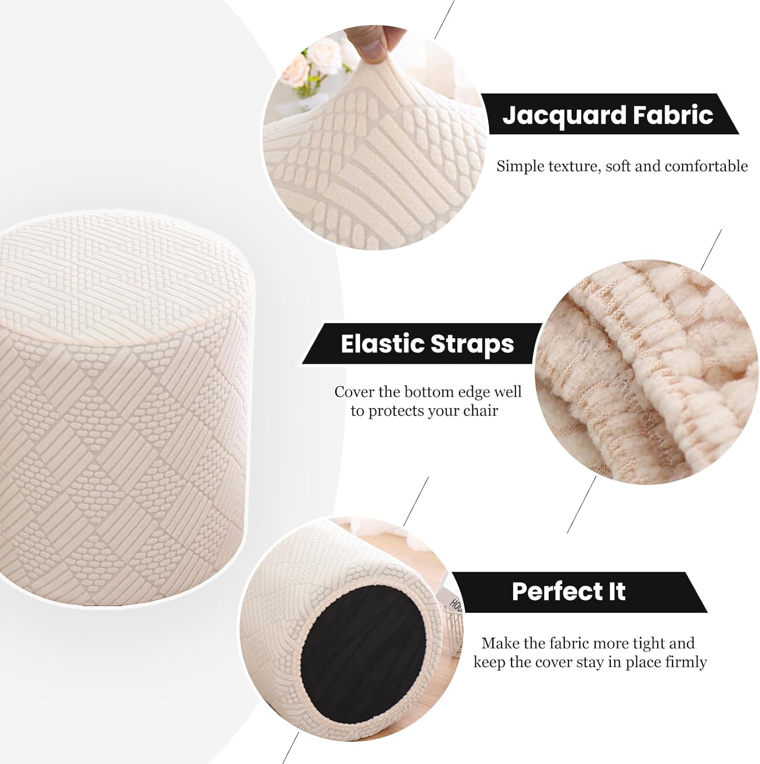 ✅【Design anti-dérapant】--- Pour l'installation, commencez par l'arrière, assurez une couverture complète, puis ajustez vers le bas pour un ajustement serré. Elle est idéale pour les foyers avec des animaux ou toute personne recherchant une protection de meuble économique sans compromis sur le style. Housse Pouf Extensible Beige 33x30 Cm XGANGM Petite Housse De Pouf Ottomane Carrée/Rond 30x20cm Extensible, Housses De Repose-Pieds, Jacquard Doux Ottomane Tabouret Protection Couverture Housse élastique Polyester Champ d'application]--- Cette housse de pouf convient à la plupart des poufs ronds et carrés disponibles sur le marché. · ✓[Design anti-dérapant]--- Pour l... Étant fabriqué à la main, il peut y avoir une différence de 1 à 3 centimètres dans la taille., b. 🌟---------------- Bienvenue Dans Notre Boutique ----------------🌟Contenu du colis : 1 housse de pouf (le pouf non inclus)Tissu : Tissu maille polyester-élasthanne pour une texture douce et confortable. Conçue pour une couverture complète, cette housse élastique protège votre meuble des taches et des déversements quotidiens. Utilisez une lessive douce et séchez à basse température. En raison des différences d'écran et d'éclairage, il peut y avoir des variations de couleur entre les images et les articles réels. Grâce à notre housse de pouf premium, vous pouvez moderniser votre meuble en quelques minutes., b. ✅【Doux au toucher】--- Fabriquée en maille composée de 88% polyester et 12% élasthanne, cette housse ne se froisse pas. Son design extensible assure un ajustement parfait pour la plupart des types de poufs, ce qui en fait un choix polyvalent pour toute maison., c. Repose-Pieds Rond Avec 4 Pieds En Bois Hauteur 30 Cm 28 Cm Repose-Pieds... Veuillez vous référer aux articles réels. ✅【Remarque】--- Seule la housse est incluse ; le pouf est vendu séparément. Conçue à partir d'un mélange de polyester et d'élasthanne, cette housse offre une sensation douce et confortable avec une élasticité excellente pour une utilisation durable. Housse De Pouf Rond/Carrée 40/45 Cm Extensible Housse
