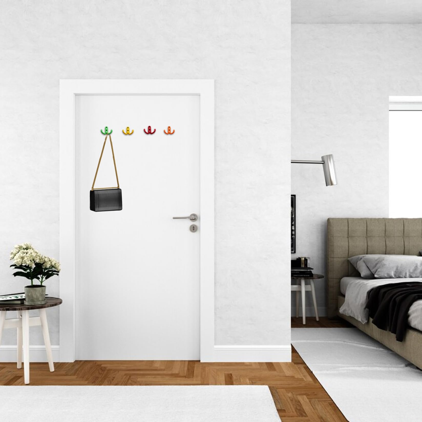 Organiseur Mural Minimaliste Lot De 2 Crochets De Suspension Pour Salle De Bain Ou Chambre à Coucher - En Plastique - Pour Suspendre Les Vêtements, Les Manteaux, Les Serviettes Crochet Pliable Zinc BOUTON DE MEUBLE,6676-96--poignées de meuble modernes en alliage de Zinc, pour placard de Le design pliable vous aide non seulement à rester organisé, mais également à économiser de l'espace précieux. Que ce soit dans votre salle de bain, placard, entrée, piscine ou cuisine, ces crochets servent à la fois d'outils d'organisation quotidiens tendance et pratiques Poids du produit : 90 g. Dimensions du produit : environ 7 x 2 x 1,2 cm. Construction en alliage de zinc résistant : fabriqué en alliage de zinc de haute qualité, ce porte-manteau pliable résiste à la rouille et offre une performance durable dans les zones humides telles que les salles de bains ou Nos crochets muraux disposent d'un design pliable télescopique, fabriqués en alliage de zinc de haute qualité pour une résistance et une stabilité accrues dans n'importe quelle pièce. Apparence minimaliste et élégante : dispose d'un design minimaliste élégant qui se marie parfaitement avec un décor moderne et traditionnel améliorant l'esthétique de la pièce tout en offrant un rangement pratique Installation murale facile : comprend le matériel de montage et peut être installé sur diverses surfaces, y compris les cloisons sèches en bois ou le carrelage, permettant un placement flexible partout où un espace de suspension supplémentaire est nécessaire Utilisation polyvalente : parfait pour accrocher manteaux, peignoirs, chapeaux, sacs, écharpes ou serviettes dans les placards, salles de bains, chambres et chambres d'enfants, ajoutant un espace de rangement fonctionnel sans encombrement 5 Pcs Minimaliste Patère Murale Robuste en Alliage de Zinc Crochet...