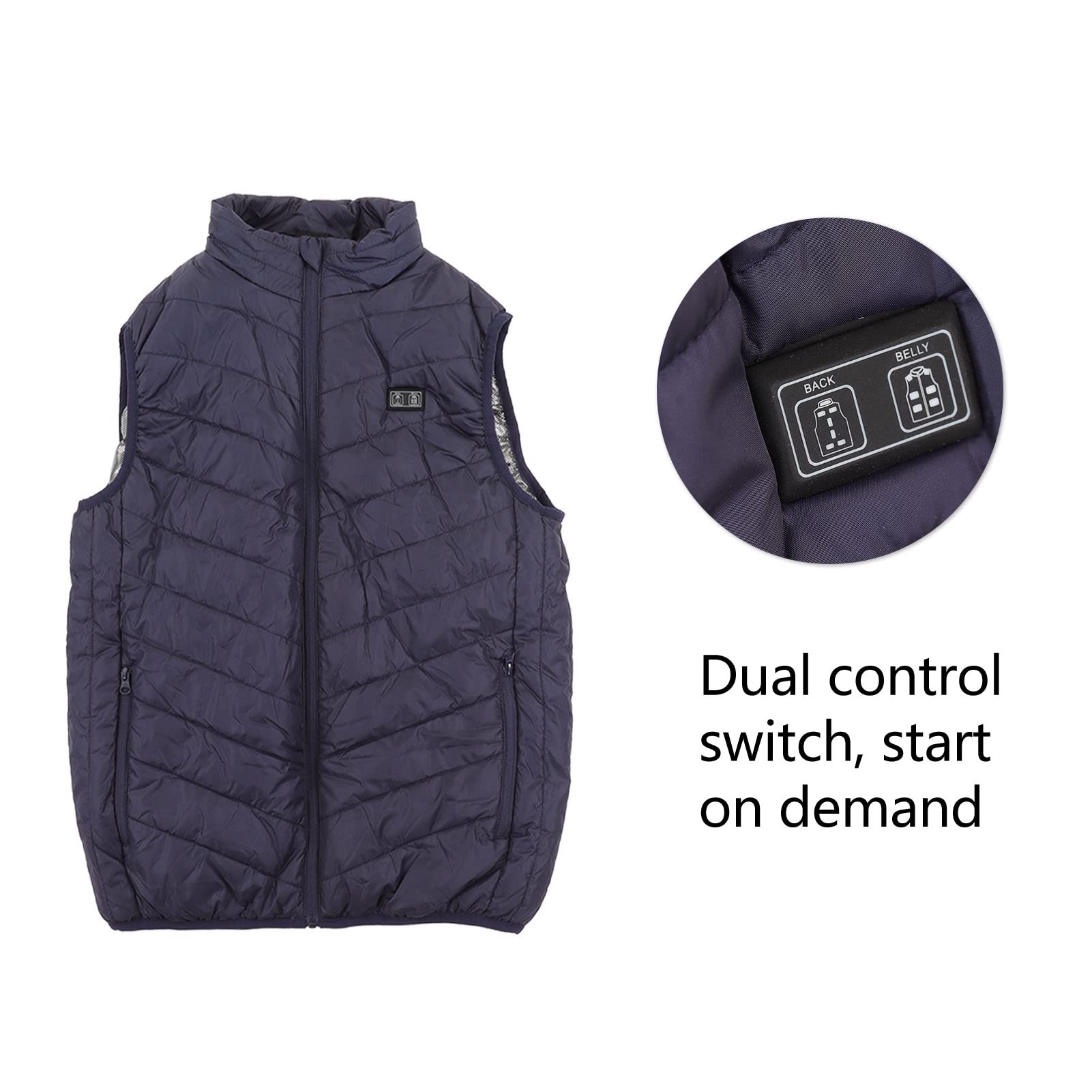 Ce gilet chauffant est fabriqué en fibre de carbone légère, supporte le lavage à la main, en machine ou à sec. Confortable et lisse au toucher, chaud pour durer... Design de poche intérieure : la poche intérieure est surdimensionnée, peut contenir la batterie externe et utilise un design à fermeture éclair. Les personnes âgées ont tendance à générer moins de chaleur. Ce gilet prend en charge le lavage en machine. Vous avez donc besoin de vêtements chauffants pour les protéger du gel., Mode d'emploi : 1., Branchez le port USB dans l'alimentation 5 V (configuration de la batterie)., 2., Maintenez l'interrupteur du gilet enfoncé pendant 3 secondes pour allumer/éteindre l'interrupteur du gilet., 3., Appuyez brièvement sur l'interrupteur pour changer le mode de chauffage. Il vous suffit de porter notre gilet qui peut vous garder au chaud toute la journée. Il est recommandé de mettre le câble USB dans votre poche, de le fermer, puis de le mettre dans le sac à linge pour le lavage en machine. Gilet Chauffant électrique à Double Interrupteur De Commande, Léger Conseils : pour réduire l'utilisation répétée des ressources. Qui a besoin du gilet chauffant ? 1., Pour les motocyclistes. Gilet Avec Batterie Externe Vêtement Chauffant Outdoor Veste Chauffante USB 19 Zones - Gilet Veste Chauffante Légère 11 Zones Col montant tendance - Avec ce col montant coupe-vent et une feuille chauffante au niveau du cou, aucune écharpe n'est nécessaire en hiver froid Tissu imperméable - Liberté de mouvement illimitée et respirabilité. Pour rester au chaud, il est bon d'opter pour des vêtements chauffants. ---- Matériau doux et confortable : chauffage intégré en fibre de carbone, peut chauffer la veste très rapidement, le non-tissé en microfibre assure une sensation super douce et confortable en hiver froid. Nous avons analysons tous les produits en vêtements de la marque joyvio et trouvons les 18 meilleurs choix pour vous. Lisez l'avis joyvio avant d'acheter Notre gilet chauffant est compatible avec la plupart des banques d'alimentation 5 V/2 A avec ports USB sur le marché Idéal pour une utilisation en automne et en hiver., 3., Pour les personnes âgées. Une fois qu'il surchauffe, il s'arrêterait jusqu'à ce que la chaleur revienne à la température standard, ce qui le rend 100 % sûr à utiliser. Si vous n'utilisez pas de chauffage de batterie externe, ce gilet chauffant peut être utilisé comme gilet chauffant d'hiver. Parfait pour les activités de plein air telles que Walking Dog, Snow, moto, camping, randonnée, chasse ou sur le chemin du bureau froid, à l'école et à la maison. Garantie de sécurité : module de protection thermique intégré.