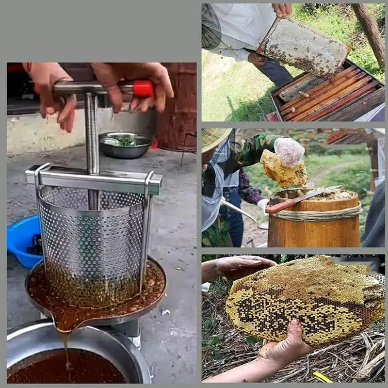 Extracteur De Miel JINGEDD Honey Press Machine, Manuel,Outil D'Apiculture Extracteur,Presse à Cire De Miel En Acier Inoxydable,pour Les MéNages,Les Extracteur Inox Pour Ruche En acier inoxydable de qualité alimentaire, il permet de séparer facilement le miel de la cire d'abeille. Compact et portable (19x19x6 cm, 675 g), tu peux l... ExoticaBlend Extracteur Miel - Manuel, pressoir Miel Inoxydable, Machine À Miel Séparateur, pour Les Grandes Et Petites Fermes Apicoles Équipement D' apiculture ❤ Pressoir à Miel Rendement élevé : Notre extracteur de miel inox buse est parfaitement dimensionnée, délivrant le miel à vitesse modérée sans éclaboussures ni gaspillage, maximisant ainsi les économies de miel. Presse-Miel, Extracteur D'Abeille, Presse-Vin De Fruits Pour Apiculture... Ce presse-miel peut également être utilisé pour la transformation des fruits et légumes, la production de vin ou le brassage. Les mailles uniformément espacées sur la paroi du fût assurent une extraction homogène du miel et de la cire d'abeille. ❤ Pressoir à Miel Design en T : extracteur de miel inox La poignée en T facilite le pressage, et son design spacieux permet d'accueillir un volume plus important pour une extraction efficace de la cire d'abeille. ❤ Pressoir à Miel Multifonctionnel : extracteur de miel manuel Peut être utilisé comme presse à miel ou presse à cire pour répondre à divers besoins.