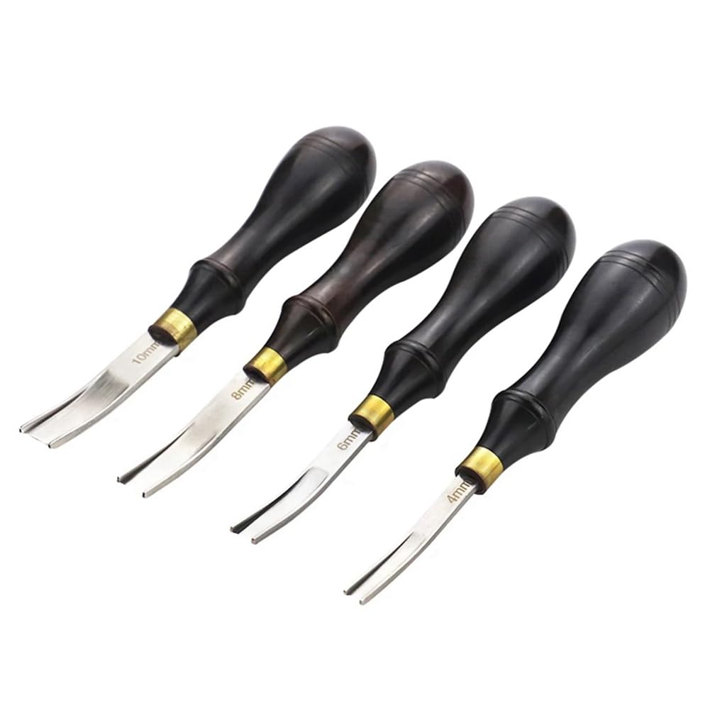 Couteau à Parer Cuir Ensemble D'Outils De Biseautage De Bord En Cuir De 4 Tailles Outil Biseautage Cuir Outils de biseautage en cuir AKOZON - Biseau à bord en cuir avec manche ZIU couteau à parer en cuir Couteau de coupe en cuir incisif grand... Chaque couteau à découper à large ouverture est doté de bords finement affûtés, permettant des coupes nettes et précises sans déchirer ni endommager le matériau. ensemble d'outils de chanfreinage des bords du cuir est équipé de quatre largeurs différentes (4 mm, 6 mm, 8 mm et 10 mm). L'ensemble d'outils de chanfreinage des bords du cuir e s'adresse à une large gamme de projets, de la coupe délicate à l'enlèvement substantiel de matière. Note: réflexion de lumière et différents écrans peuvent causer la couleur de l'article dans un peu différente de la vraie chose. Parfait pour la personnalisation d'articles en cuir ou le travail du bois Ces outils de biseautage de bord en cuir sont fabriqués en acier inoxydable de qualité supérieure, chaque lame subit un traitement thermique spécial pour améliorer la dureté et la flexibilité, garantissant la longévité et la résistance à la Les poignées de l'ensemble d'outils de couteau à découper à large ouverture sont conçues de manière ergonomique en utilisant du bois noir de qualité, offrant une prise en main confortable qui minimise la fatigue même pendant de longues heures de travail ETO-couteau à parer en cuir Couteau en cuir Lame en céramique Poignée...