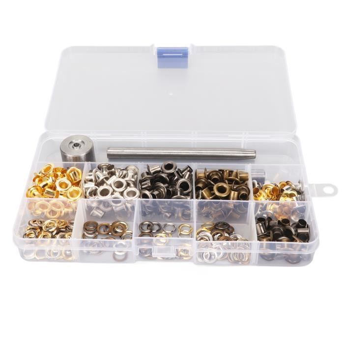 Kit Cuir Kit De 800 œillets En Métal Avec Outils, Mini œillets De 2 Mm En 4 Couleurs (or, Argent, Cuivre, Bronze) Avec Outils D'installation Et Boîte De Rangement Pour Loisirs Créatifs, Vêtements, Chaussures œillets Couture Cuir Toile Les œillets en cuivre plaqué (or, argent, bronze) ne rouillent pas. La boîte de rangement pratique garde tout organisé. Montage ultra-simple : juste à percer et... Tbest Kit d'outils pour œillets 400 pièces œillets 5mm 4 couleurs boîte DECORATION : Le kit d'œillets est également idéal pour décorer des vêtements, des sacs, des objets d'artisanat et bien plus encore. Fdit Kit d'outils pour œillets 400 pièces œillets 5mm 4 couleurs boîte... Stockage facile : Le kit d'œillets est livré avec une boîte en plastique gratuite pour le stockage, qui peut être utilisée pour stocker les petits outils d'œillets dans des compartiments séparés, il y a des séparateurs à l'intérieur de la boîte pour qu'ils ne se mélangent pas, facile à démonter et à insérer lorsque vous cousez, et vous pouvez facilement trouver la taille et la couleur dont vous avez besoin. Spécifications Type d'article : Trou Matériau : Laiton Spécifications : 3 outils d'installation, 4 couleurs de trous (200 par couleur) Couleur de la boucle à œil : or, argent, bronze, gris canon Liste d'emballage : 3 x outils d'installation 800 x œillets de rivet 1 x boîte de rangement Matériau : Cet œillet est en laiton, l'outil est en acier et la boîte est en plastique, robuste et inoxydable, pas besoin de s'inquiéter de la déformation, de la rupture ou de la décoloration, et il peut également ajouter un style vintage et exquis à vos travaux d'artisanat en cuir. UTOCLEC Œillets Mini, 800 Pièces Œillets en Métal Kit, Quatre Couleurs, Oillets en Cuivre de 2 mm et Avec 3 Outils Oeillet Couture, pour Toile/Cuir/Bannière/Rideaux/Vêtement Caractéristiques : 1., les mini œillets métalliques sont en laiton, robustes et durables, ne rouillent pas et ne se déforment pas, et peuvent ajouter un style vintage et exquis à votre artisanat en cuir, ce qui en fait le choix parfait pour vos projets de bricolage., 2., Application : Le kit d'œillets pour chaussures convient à la fabrication, à la réparation et à la décoration de chaussures, de sacs, de vêtements, de lacets et d'objets en cuir., 3., le kit d'œillets est facile à installer, il suffit d'utiliser nos outils pour marteler le petit trou et l'œillet directement ensemble., 4., Nous avons également offert une boîte en plastique pour ranger les boucles à œil, qui est facile à démonter et à placer, et qui peut être insérée pendant la couture.