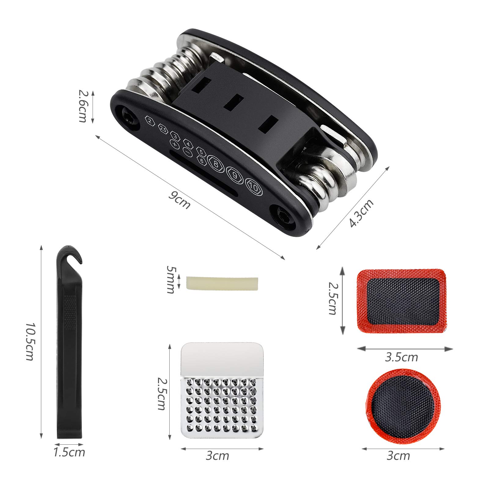 Spécification: Matériel: Acier + ABS Couleur: Noir Taille du colis: 9x11cm/3., 54x4., 33 pouces Poids: 250g Le forfait comprend: Kit d'outils de réparation 1x16 en 1 2x démonte-pneus en plastique 6x patchs autocollants pour chambre à air 1x râpe à pneus en métal 1x clé Allen de 4 mm 1x sac à outils noir Conseils chaleureux: Veuillez permettre une légère différence de dimension en raison de différentes mesures manuelles. Kit Reparation Velo, 16 en 1 Kit Crevaison Velo, Trousse Multifonction Outils Pneu, Kit Velo Convient pour Une Utilisation Situa. Prix de comparaison. 37,82... Outil multifonctionnel 16 en 1: Il s'agit d'un outil multifonctionnel de vélo indispensable, qui peut aider à résoudre la plupart des problèmes de vélo. - Les kits d'outils de réparation de vélo multifonctions 16 en 1 conviennent à la réparation de la plupart des vélos et peuvent également être utilisés séparément comme outil de réparation domestique quotidien. Bombe Anti Crevaison Voiture 2 Pcs Trousse De Réparation Outils Portables Vélos Mécanicien Cycliste Cle Allen Ensemble d'outils pour vélo avec outils de réparation, comprenant 6 patchs pour pneus, 2 démonte-pneus, 1 râpe en métal et une clé Allen de 4 mm, le tout emballé dans un sac de rangement noir. Le kit de réparation de vélo est un accessoire indispensable et un bon compagnon pour les randonnées à vélo. Votre satisfaction est notre plus grande quête, n'hésitez pas à nous contacter si vous avez des questions. Même si le pneu est cassé sur la route, appliquez simplement la râpe pour polir le pneu, puis collez fermement le patch sur la zone perforée, pas besoin de colle supplémentaire. peut également être utilisé comme alternative outil pour la famille. - Fabriqué en acier au carbone et ABS de haute qualité, finition soignée et professionnelle, design de mode, durable, plus solide et plus efficace. - Tous les outils de réparation de vélo sont emballés dans un petit sac de kit pour éviter de perdre les petits outils, assez petit pour tenir dans votre poche ou votre poche de pantalon. Ce kit complet contient 16 outils essentiels dans un sac compact et portable que vous fixez facilement à votre vélo à l'aide d'une bande velcro. Réparez les pneus, ajustez votre selle, effectuez des réparations mineures et bien plus encore - La route est imprévisible et vous devez vous assurer d'être toujours prêt! Compact et portable : ce kit de réparation de vélo est assez mini pour tenir dans votre poche ou votre poche de pantalon. OUTILLAGE CYCLE Kit de réparation de vélo Kit de réparation de pneu de
