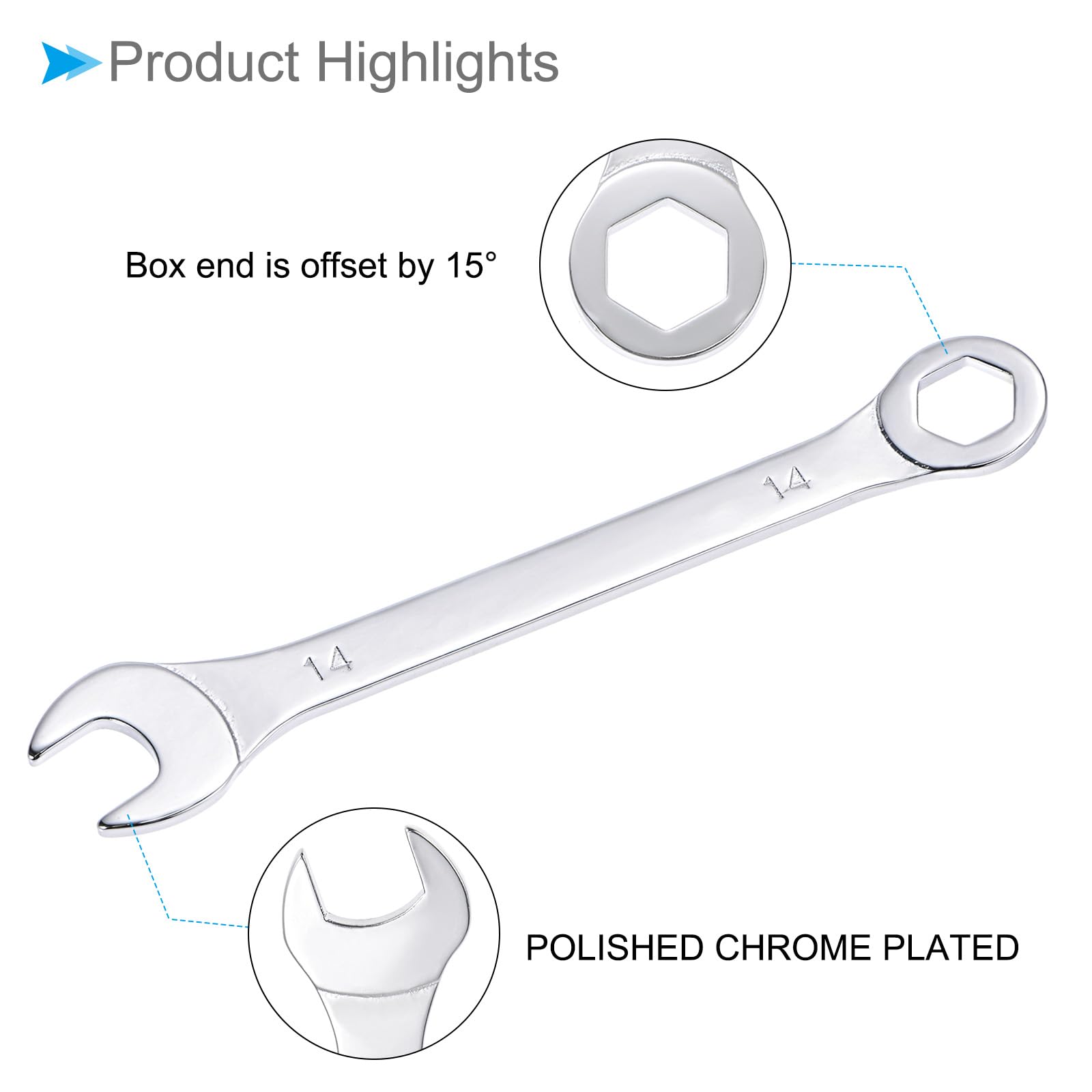 Clé mixte à cliquet métrique, 12 pans, 14 mm, Fini Chrome, UAD641 Ne dépassez pas les limites de couple recommandées pour l'outil. Clé Métrique 12mm CoCud Clé Mixte, Boîte Métrique De 14 Mm, Extrémité Ouverte, Design à 6 Points, Décalage De 15 Degrés, Boîte à Double Extrémité Et Extrémité Ouverte – (applications : Pour Les Réparations Domestiques 6 Pans Décalage 15 Degrés Astuces utiles :--- Lors de l'utilisation de la clé mixte, assurez-vous qu'elle est correctement alignée avec la fixation pour éviter tout glissement. Cette clé coudée à tête trempée est de taille compacte. Elle offre une forte résistance mécanique et répond à toutes les normes aéronautiques. HAUTE PERFORMANCE - Hautes performances mécaniques combinées à une conception compacte conforme aux normes aéronautiques Commander Clé A Pipe 12 Mm CoCud Clé Mixte, Métrique De 12 Mm, à Extrémité Ouverte En Boîte à 6 Pans, Décalage De 15 Degrés, Double Extrémité Boîte Et... ★ Clé mixte --- L'extrémité ouverte de cette clé mixte présente un design décalé de 15 degrés, permettant un meilleur accès et une utilisation dans les espaces étroits. ★ Taille de la clé mixte --- Longueur totale : 144 mm / 5,67 pouces, Taille de l'extrémité ouverte : 12 mm, Taille de l'extrémité en boîte : 12 mm, Matériau : acier au carbone de haute qualité, Finition : polie, chromée ★ Acier au carbone --- Fabriquée en acier au carbone de haute qualité, cette clé mixte offre une excellente résistance, robustesse et résistance à l'usure. --- L'extrémité ouverte de cette clé mixte présente un design décalé de 15 degrés, permettant un meilleur accès et une utilisation dans les espaces étroits. ★ Large application --- Les tailles sont marquées de manière pratique sur les deux extrémités de la clé, facilitant ainsi une identification rapide. Attributs :* Longueur totale : 144 mm / 5,67 pouces* Taille de l'extrémité ouverte : 12 mm* Taille de l'extrémité en boîte : 12 mm* Matériau : acier au carbone de haute qualité* Finition : polie, chroméeInclus :* 1 pièce x clé mixteApplications et caractéristiques :--- Les tailles sont marquées de manière pratique sur les deux extrémités de la clé, facilitant ainsi une identification rapide.