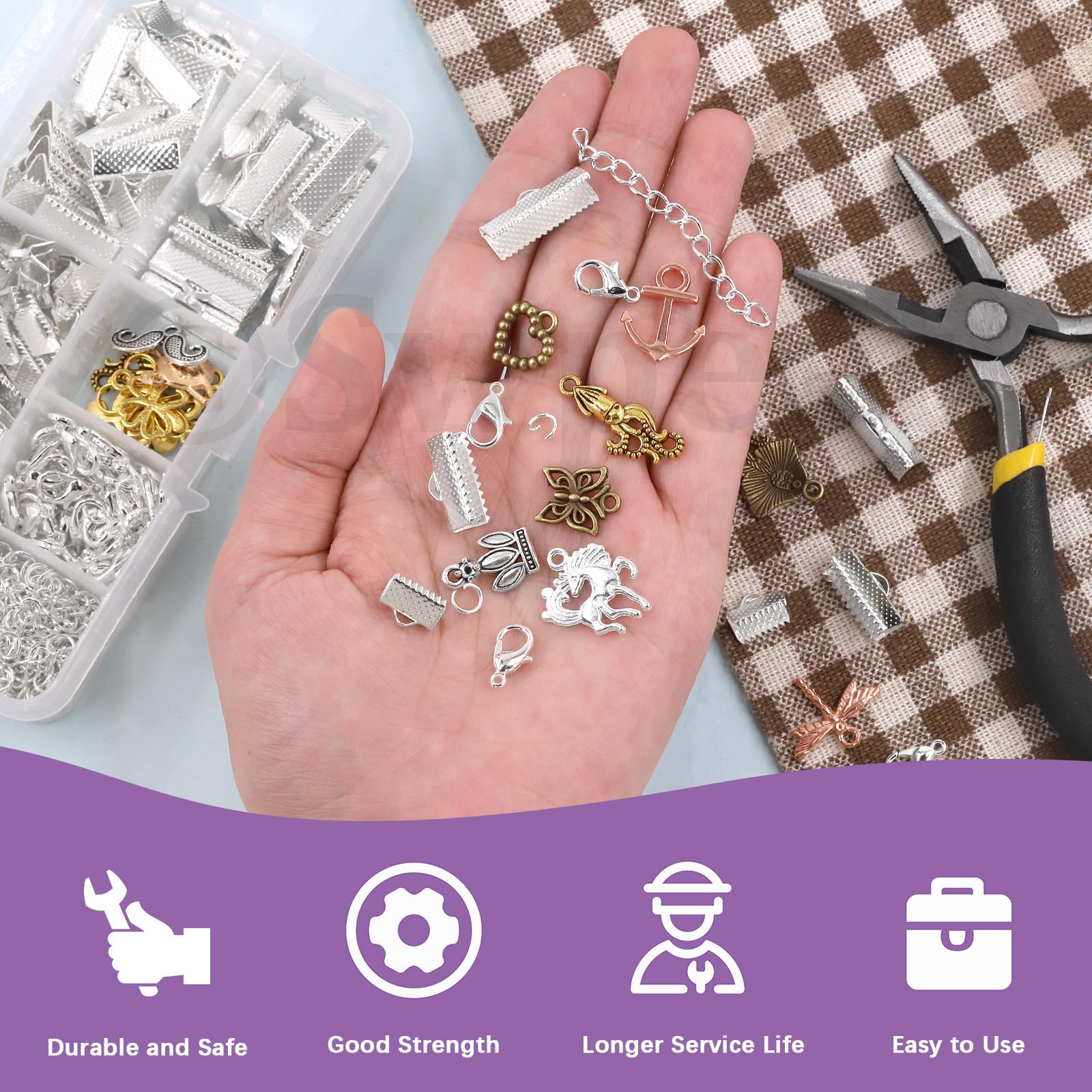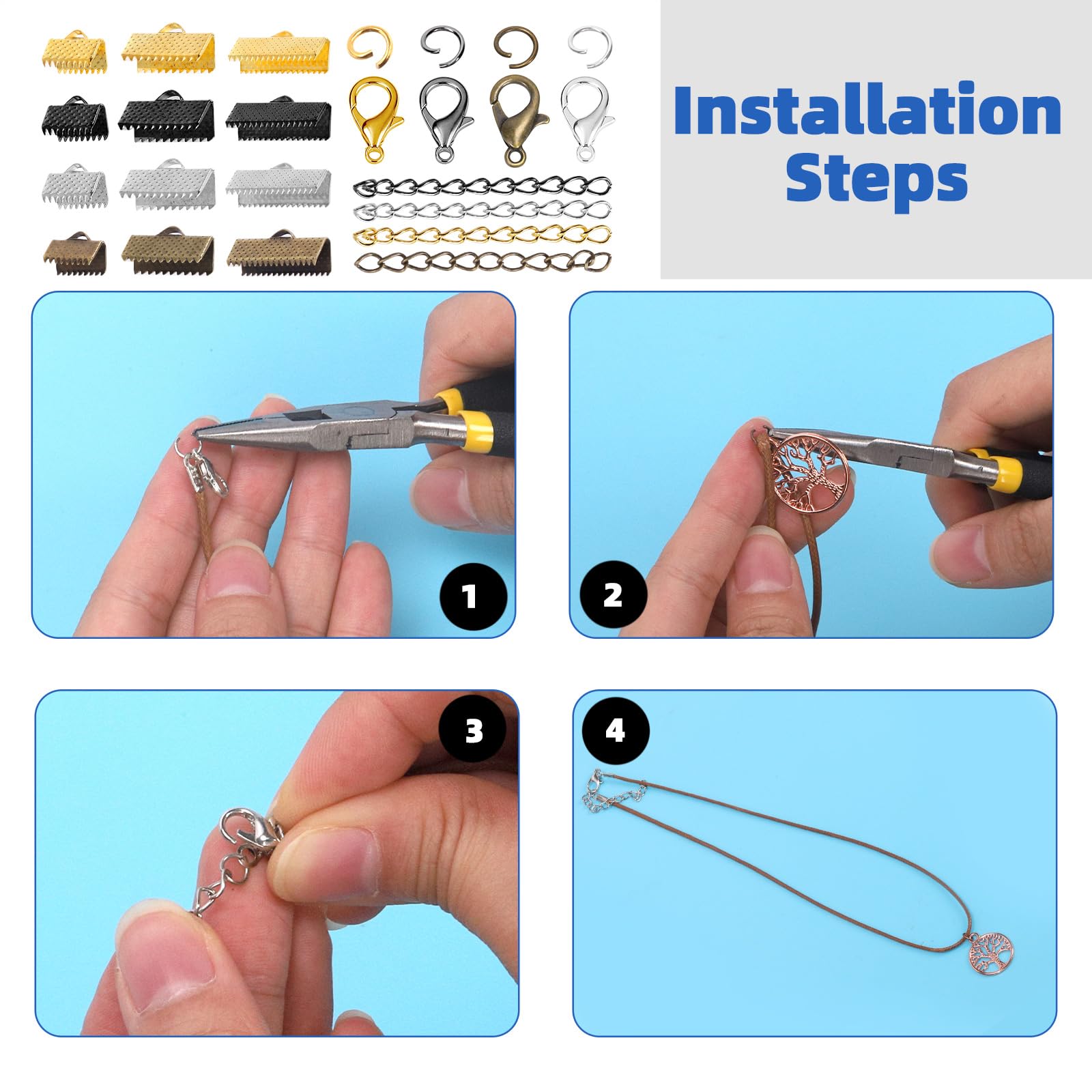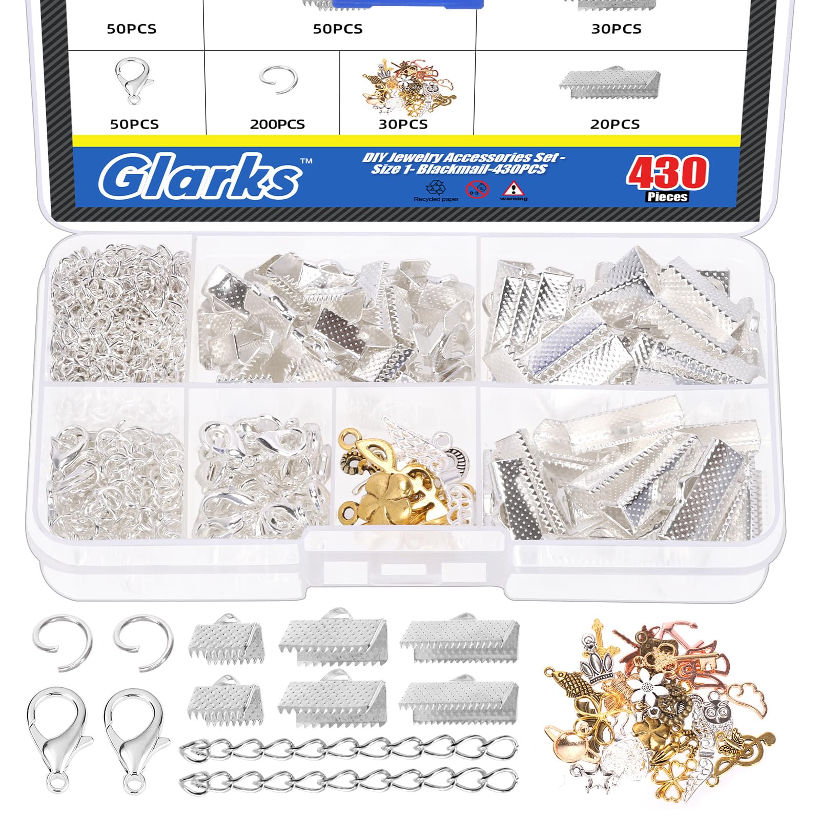50 pièces de ruban de bricolage pour faire des kits en gros pour création de bijoux nbeads 20 Brins 45/50c Chaînes en Acier Inoxydable 304, 1.5/2 ince Chaîne Câble Lien Collier... Kit 371 Pièces Or Argent Kit De 373 Bracelets En Ruban Pour La Fabrication De Bijoux, Fermoirs Mousquetons, Anneaux Ouverts Et Rallonges De Chaîne Pour La Fabrication De Marque-pages, Bracelets, Colliers Ras Du Cou (doré Et Fermoirs Homard Anneaux Saut Extendeurs 371 Pièces 【 ce que vous obtenez 】 Kit de Bracelet de ruban DIY 370pcs contient 2 couleurs argent + or KC, 20pcs chacun de fermoir de homard de 12MM, 100pcs chacun de boucle simple de 5MM, 20pcs chacun de chaîne d’extension, 20pcs chacun de fermoir de Clip de cheval de 10MM, 15pcs chacun de fermoir de Clip de cheval de 16MM, 10pcs chacun de fermoir de Clip de cheval de 20MM. C’est un bon accessoire pour faire ou réparer des projets de bijoux. NB Collier de chaîne de câble plaqué or de 10 avec anneaux de saut de 50 pièces 4 et... Il y a un trou sur le dessus pour relier les anneaux de saut, boucles, etc. 【 large APPLICATION】 largement utilisé dans la fabrication de colliers, bracelets, bracelets de cheville, ceintures, rubans, soie, daim, réparation d’artisanat de bijoux, etc. Ne pas utiliser si endommagé. Veuillez inspecter avant chaque utilisation.