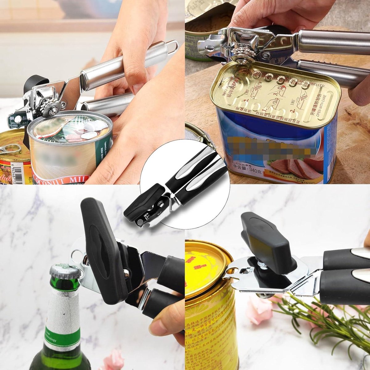 Ustensile Cuisine Multifonction Ouvre-Boîte Portable - Ouvre-Bouteille Manuel Antidérapant En Acier œuvre Boite De Conserve Ouvrez les boîtes en toute sécurité et sans effort : dites adieu aux accidents grâce à la poignée souple antidérapante. Cet ouvre-boîte coupe le couvercle de la boîte en douceur sur le côté du couvercle Acier Inoxydable Ouvre Bocal Réglable - Ouvre Boîte pour Âgées Trou de suspension pratique lavable au lave-vaisselle:Avec trou de suspension intégré pour un rangement économique d'espace dans la cuisine,Nettoyage facile,compatible lave-vaisselle ou simplement rinçable à l'eau hygiénique et économe en temps Description de Ouvre-boîte manuel en acier inoxydable à poignée unique, portable et portatif Idéal pour toutes les cuisines : ouvre-boîte manuel haut de gamme, idéal pour la maison et le camping. Conception ultra-sécurisée à bords lisses : dites adieu aux bords ! La technologie de coupe latérale permet une ouverture en douceur des couvercles sans laisser de traces de métal, évitant... Sécurité et polyvalence pour toutes les occasions:Sécurisé pour les familles,couvercles refermables,aucun risque de blessure,Idéal pour restaurants,bars,activités extérieures et usage quotidien en cuisine 3-en-1 Ouvre-boîte multifonction:Notre ouvre-boîte en acier inoxydable combine trois fonctions pratiques,ouvre facilement les boîtes métalliques,retire les couvercles comme levier et sert aussi d'ouvre-bouteille pour les bouteilles de bière,Parfait pour la cuisine,le camping ou les pique-niques un outil de cuisine indispensable pour chaque foyer Design en acier inoxydable haute qualité anti-rouille:Fabriqué en acier inoxydable pour une durabilité extrême et une résistance à la corrosion,La poignée ergonomique avec revêtement PVC antidérapant assure une prise en main sûre même avec les mains mouillées Ouvre-boîte Manuel 3-en-1 Multifonction en Acier Inoxydable Ouvre Boîte,Ouvre-Bouteille et Levier avec Poignée Ergonomique Antidérapante Coupe Précise Sans Effort, Sécurisé et Lavable Lave Vaisselle Ustensile de Cuisine pour Maison, Camping Spécifications Nom du produit:Ouvre-boîte manuel Matériau:Acier inoxydable Couleur:Noir Taille:7., 64 pouces Emballage:Sac OPP Description du produit Ouverture des boîtes:Tournez simplement la poignée de l'ouvre-boîte dans le sens des aiguilles d'une montre pour ouvrir la boîte sans effort,Cela économise du travail,coupe complètement,ne laisse pas de bavures,est sûr et ne blesse pas vos mains Contenu du paquet 1 X Ouvre-boîte manuel
