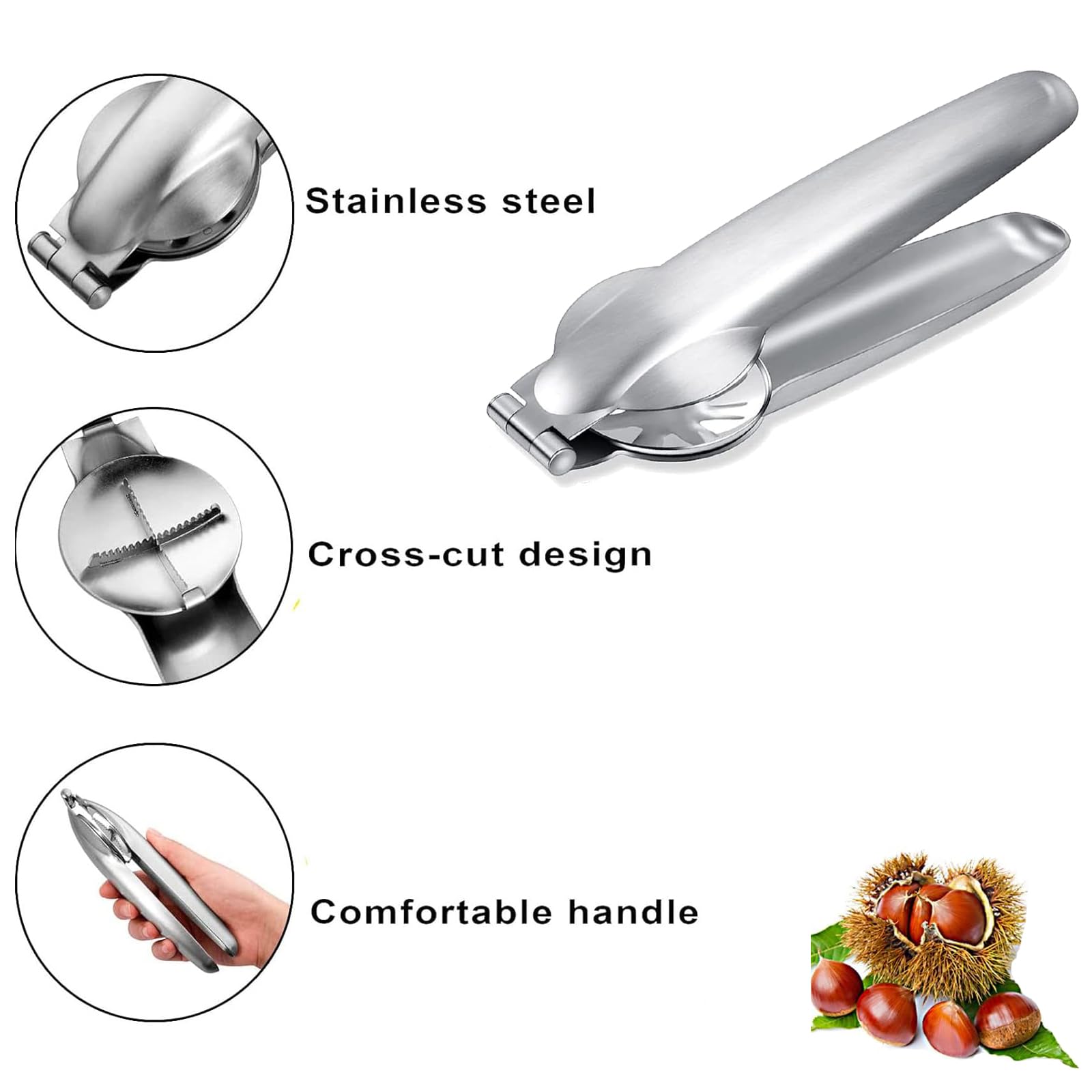 👍 SÉCURITÉ ET HYGIÈNE : Des matériaux de haute qualité vous garantissent une longue durée d'utilisation sans vous soucier des dommages ou de la rouille, afin que vous et votre famille puissiez déguster des noix en toute sécurité et en bonne santé. Accessoire Cuisine Pratique Cadeau Ouvre Chataigne,Inoxydable Pince à Châtaignes En Acier Pince Noix Durable Poignée Antidérapante 【Lame croisée tranchante】 La lame dentelée est fabriquée en acier inoxydable trempé et revenu de haute qualité, stable, durable et résistante à la déformation. Tigrezy Châtaigne Clip, Pince a Chataignes, Ouvre Chataigne, Chestnut... Un excellent cadeau pour les amis et la famille qui aiment cuisiner. 👍 MATÉRIAU DE HAUTE QUALITÉ : Nos Ouvre Chataigne sont fabriqués en acier inoxydable de haute qualité, offrant une excellente durabilité et une résistance à la rouille. Maison - Découvrez notre offre Ouvre-châtaignes en acier inoxydable pince à noix à clip rapide coupe-gaine de châtaigne casse-noix décortiqueur. Livraison gratuite à partir de 25€* | Paiement sécurisé | 4x possible | Retour simple et rapide Il est facile à utiliser, économe en énergie, pratique et efficace pour ouvrir les châtaignes et les noix de différentes tailles, et vous rend la vie plus confortable. 【Ouvre Chataigne】 L'ouvre-noix Ouvre Chataigne convient à une grande variété de noix, y compris les noix faciles à casser, comme les noix de pécan, les amandes, les noix, les noix du Brésil, etc. 👍 DESIGN UNIQUE : Nos Ouvre Chataigne présentent un design convivial qui crée un clip à noix solide et facile à utiliser, vous garantissant une ouverture et une fermeture faciles. Ouvre-châtaignes, en acier inoxydable 304, pince à châtaigne 【Facile à utiliser】 Le Ouvre Chataigne est de forme ergonomique et dispose d'un effet de levier. 👍 FACILE À TRANSPORTER : Nos Ouvre Chataigne sont compacts et légers.