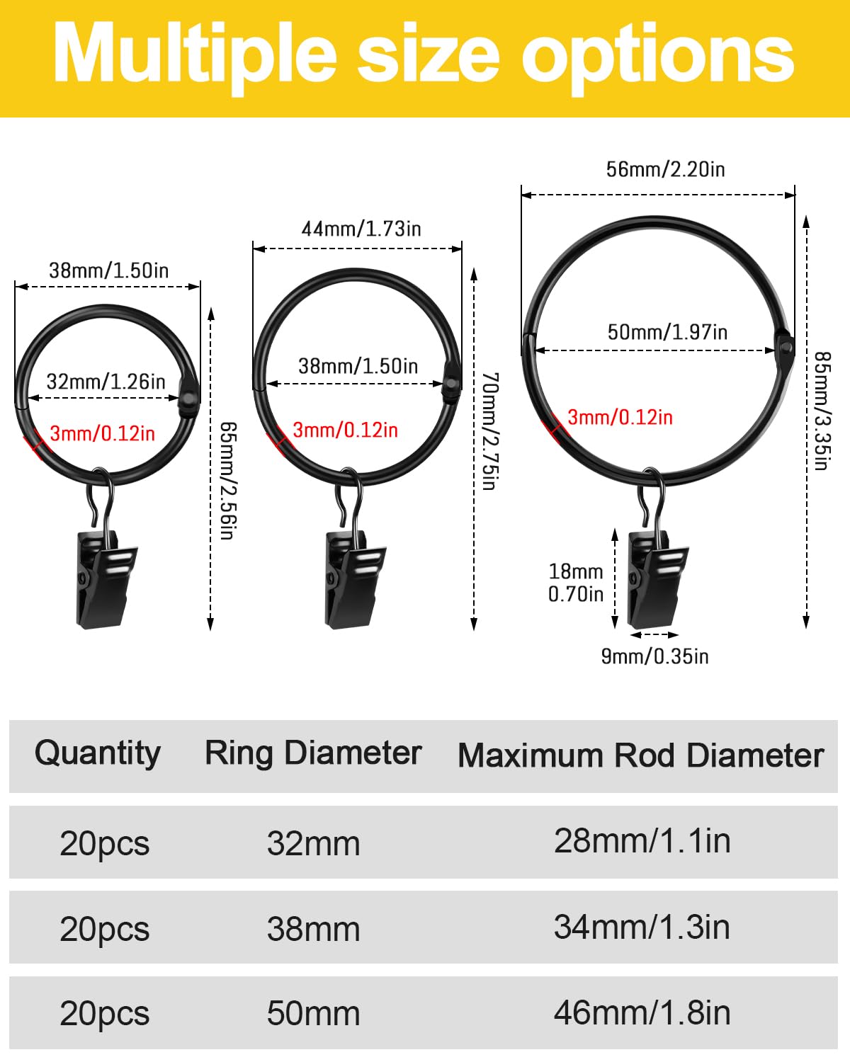 La structure intérieure de la roue dentée des clips augmente la friction pour un maintien sûr sans rayer la surface du rideau. Lot de 20 anneaux de rideau avec clips - En métal - Diamètre intérieur : 50 mm - Pour tringle - Noir · 32mm. €8.99€8.99. €0.45 per kg(€0.45€0.45 / kg). In... Le clip élastique est réutilisable et offre une capacité de charge maximale de 1,5 kg par clip Créez une ambiance chaleureuse dans le salon ou la chambre à coucher. Anneau Rideau Metal Lot De 20 Anneaux De Rideau à Ouvrir - En Métal - 50 Mm - Pour Rideau De Douche Et Tringles à Rideaux - Noir Anneaux De Rideau De Douche Anneaux Rideau Avec Clips Matériau : les anneaux de rideau de douche avec clips sont fabriqués en matériau métallique avec un revêtement durable et inoxydable. pour créer un environnement confortable pour vous. La solution parfaite pour tous les besoins de suspension Facile à utiliser : les anneaux de rideaux avec clips ont un design d'ouverture qui permet de changer les rideaux sans démonter la tringle. Remarque : lors de la première utilisation, les anneaux et les clips peuvent être un peu plus serrés Design élégant : les anneaux de rideau noirs avec clips s'intègrent parfaitement dans votre intérieur et ajoutent une touche d'élégance et de chic à n'importe quelle pièce. Lot de 20 anneaux de rideau avec clips : 20 anneaux de rideau de 50 mm avec clips. Antirouille et durable : l'anneau de rideau de douche en métal est fabriqué en matériau métallique et ne rouillera pas et ne se déformera pas pendant l'utilisation. Les crochets de rideau de douche noirs fonctionnent avec n'importe quel rideau de douche ou doublure.CONCEPTION DE FERMETURE DE L'ANNEAU: Une fermeture à pression simple rend l'installation de l'anneau de douche noir rapide... Combinaison parfaite : anneaux de rideau avec crochets en métal – Convient à la plupart des types de rideaux tels que les rideaux de douche, les rideaux français, etc. Largement utilisé : crochets de rideau idéaux pour les rideaux et les rideaux de douche, mais aussi pour les jouets, la décoration de fête ou l'équipement de camping. Accessoire Rideau Livre Porte-clés Anneaux Rideau Douche Caianwin Lot 20 - Métal 50mm Ouverture Facile Noir Anneau Tringle à Rideau