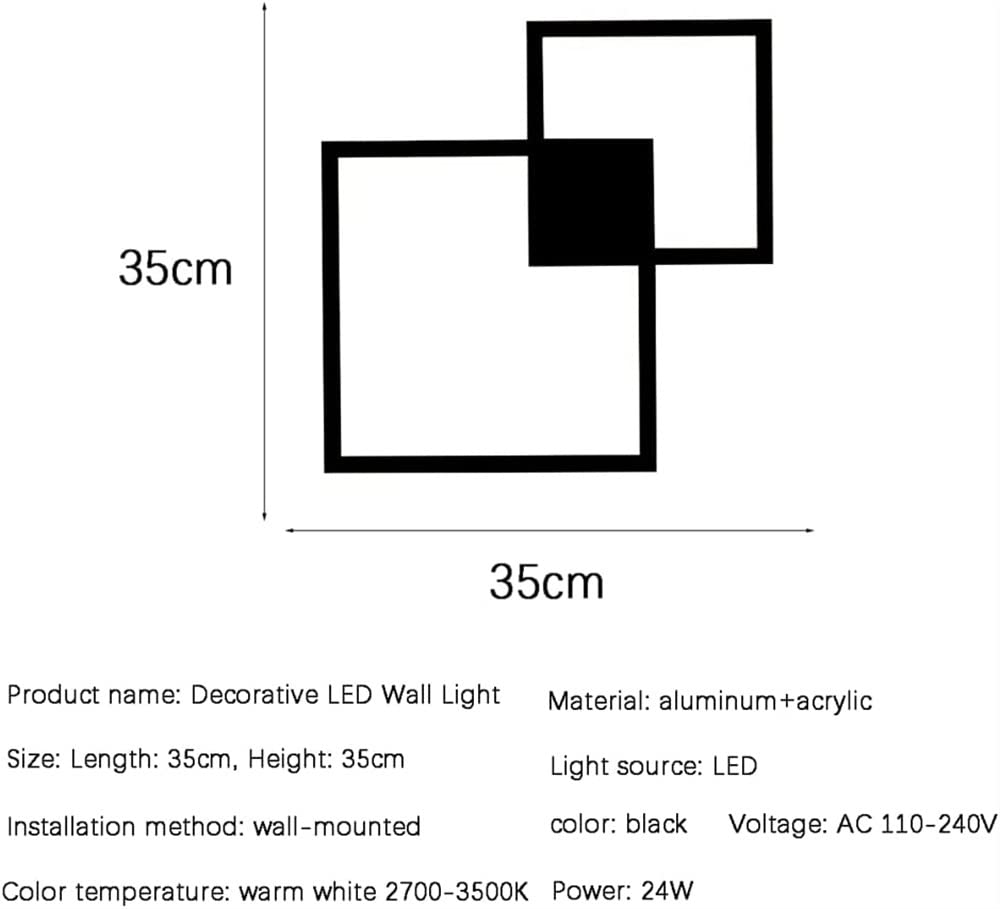 Applique Murale Design Nordique Applique Murale En Bois Applique Murale Ovale LED Applique Murale Nordique Géométrique Applique Murale LED Noire Applique Murale LED Nordique Éclat Double Applique murale d'intérieur en acrylique, applique murale LED 5 W, lampe de chevet de chambre à Large gamme d'applications : s'adapte aux différents styles de décoration de votre maison, peut être largement utilisé dans l'entrée, le chevet, le salon, la cuisine, la salle à manger, la chambre, les escaliers et les couloirs. Applique murale LED moderne avec cage géométrique en fer • Luminaires... Décoration : comme décoration murale, cette applique convient à de nombreux endroits, comme la salle à manger, le salon, le couloir, les escaliers, la chambre, etc. Le forfait comprend1 applique murale1 x accessoires de montageSi vous avez des questions, n'hésitez pas à nous contacter. Nous vous répondrons dans les 24 heures et vous fournirons des solutions satisfaisantes, Lustres LustresCaractéristiques:Type: Applique MuraleStyle: ModerneLa couleur noireQuantité de source lumineuse : 1Type de source lumineuse: DELMatière : MétalTaille du corps de la lampe: 35cm* 35cmCulot de l'ampoule : LEDTempérature de couleur : 3000KSi la source lumineuse a une source lumineuse: OuiPuissance: 24WTension : 110V-240VZone d'irradiation : 3-5 mètres carrésEspace applicable : salon, bureau, chambre, cuisine, chambre, etc.