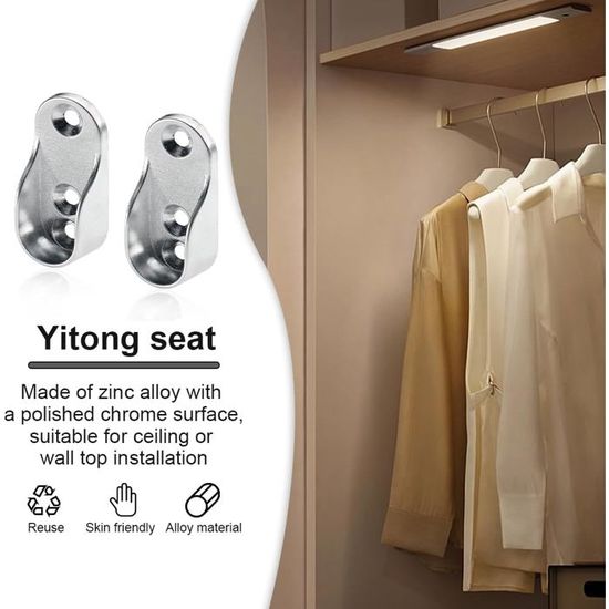 Support Tringle Penderie Métal Support Métallique Cintre 4 Supports De Tringle à Vêtements Ovales En Alliage Zinc - Pour Armoire Et Penderie | Fixation Facile Sans Percage Support Tringle Supports Métal Pour Barre Dressing Ovale 15-17mm Lot 4 Barre Penderie 4 Supports De Tringle à Vêtements Ovale - Acier Nickelé - Pour Penderie, Salle De Bain Support Tringle 4 Pièces Barre De Penderie,Support Tringle,Penderie Ovale Support Barre Penderie Alliage De Zinc Nickelé Pour Tringle Vetement Dre ; i. Livré entre le 12/01 et... - Universalité : Adapté aux tringles de 15 à 17 mm de diamètre, idéal pour les espaces étroits ou larges. Support de barre d'armoire: Le support de barre de garde - robe en métal est formé d'une seule pièce en alliage de zinc épaissi moulé sous pression, placage poli multicouche, anti - rayures, résistant à l'usure et à la corrosion, pas facile à déformer, pas facile à oxyder, utilisation plus longue. Positionnement poreux plus ferme et meilleure portance. Caractéristiques : - Matériau Résistant : Fabriqué en métal pour une durabilité accrue et une charge maximale répartie. Compatibilité: Le processus de sable grossier de la paroi intérieure peut augmenter la force de frottement, une meilleure fixation de la barre de garde - robe, pas facile à glisser. Le contenu comprend: Comprend 4 supports métalliques et 8 vis (m3,5 × 16) pour une installation facile. Application: Ces porte - manteaux suspendus sont adaptés pour les poteaux de niche, les poteaux de garde - robe, les poteaux de garde - robe de boîte, les niches, les armoires, les rainures, les armoires. Support de barre d'armoire: Le support de barre de garde - robe en métal est formé d'une seule pièce en alliage de zinc épaissi moulé sous pression, placage poli multicouche, anti - rayures, résistant à l'usure et à la corrosion, pas facile à déformer, pas facile à oxyder, utilisation plus longue