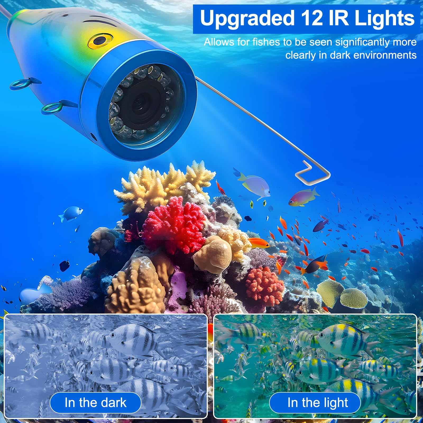 Avec le port de charge USB-C pratique, vous pouvez facilement recharger via une banque d'alimentation. Caméra HD 720P avec écran IPS 7: Contrairement aux caméras de pêche sous glace traditionnelles de 1000 TVL, notre caméra de pêche offre une véritable résolution HD 720P et est étanche IP68., Cela garantit des vues nettes et détaillées de l'activité sous-marine sur un écran IPS de 7 Câble 20m Résistant Froid KAOLALI Caméra De Pêche Sous Marine, 7 Pouces Caméra De Détecteur De Poissons Écran LCD HD 1080P Camera Sous Marine Peche Étanche Pour Pêche Sur Glace En Lac Et En Bateau Câble Camera Sous Marine Fish Finder Moniteur LCD Couleur de 7 Pouces]--- Cette caméra de pêche sous-marine dispose d'un écran couleur TFT de 7 pouces, d'un câble d'extension de 50 mètres et de... Réglez facilement l'éclairage à l'aide du simple bouton (LED). Notre caméra de pêche a été mise à jour en haute définition 720p. Et avec un rétroéclairage de 700cd/m2, ce qui assure que vous pouvez utiliser au soleil ou la neige jour. Plug and Play: Adieu aux caméras sous-marines pour la pêche sur le marché qui nécessitent des connexions de câbles compliquées pour fonctionner. Le pare-soleil intégré offre une vision claire même en plein soleil ou dans la neige Différente des autres produits 480p ou 1000TVL. Cela fait un cadeau de pêche sur glace parfait pour les hommes, les femmes, papa, mari, grand-père, amis et pêcheurs de la même manière La caméra de pêche sur glace sous l'eau a un moniteur LCD 7'' 1024*600, elle produit une image incroyablement claire. CEN Caméra de pêche Sondeur LCD 5 Pouces, Détecteur de Poissons Sous... Batterie 5600mAh et recharge USB-C: Profitez de sessions de pêche prolongées avec notre batterie lithium robuste de 5600mAh qui offre jusqu'à dix heures d'utilisation continue. Enregistrement vidéo et photographique DVR: Ce détecteur de poissons équipé d'un écran de 7 pouces permet d'enregistrer des vidéos et de prendre des photos. Moniteur LCD de 7 pouces Kit de caméra vidéo de pêche sous-marine 100 0TVL 6W IR LED Fish Finder