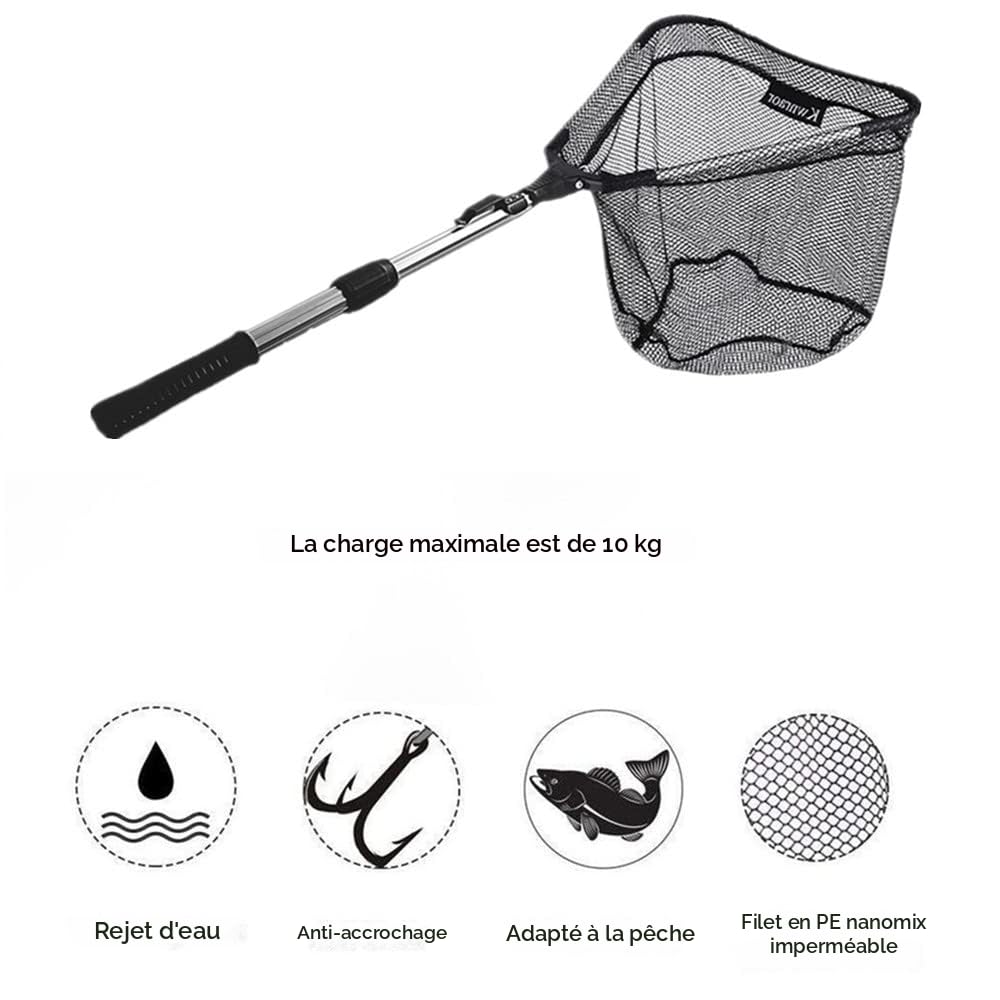 POIGNÉE FILET DE débarquement télescopique solide et flexible idéale... Le filet en nylon est recouvert de caoutchouc pour protéger les poissons et éviter les accrocs. Il flotte sur l'eau et se replie facilement pour le transport Epuisette De Pêche Pliable Kowaku Épuisette De Pêche Télescopique - Grand Filet Pratique Epuisette De Peche Les plus offerts: Les articles les plus populaires commandés en tant que cadeau dans la boutique Filets de pêche et accessoires