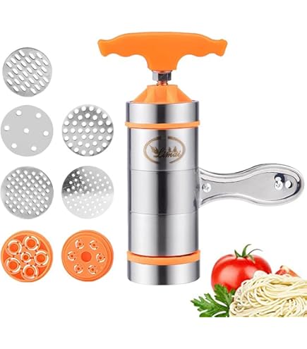 Il est préférable de nettoyer l'intérieur et l'extérieur avec un chiffon doux ou une peluche de coton ou de rincer à l'eau. 【facile à nettoyer】 la machine à pâtes a une structure amovible, facile à enlever et à nettoyer. 【opération facile】 opération facile, gain de temps, idéal pour faire des pâtes en quelques secondes. Il est préférable d'ajouter un peu d'huile de cuisson, ce qui permet d'économiser la pression de l'extrusion et d'empêcher les nouilles de s'agglomérer., 2., Une fois que les nouilles sont bien faites, il est difficile de les laver immédiatement, mais tremper dans l'eau chaude pendant quelques minutes, c'est aussi facile., 3., Ne nettoyez pas la presse à pâtes directement à la main, faites attention à ne pas vous blesser les mains. Pressoir manuel pour pâtes fraicheTorchio Bigolaro avec banc Il est facile à utiliser pour les jeunes et les personnes âgées. Pétrir la pâte molle avec de l'eau. Machine à pâtes, machine à pâtes manuelle à rouleaux en acier... Vous pouvez choisir différentes formes en fonction de vos nouilles préférées. Il suffit de glisser la pâte fraîchement préparée sur les petits pains, de tourner la manivelle et vous aurez vos propres pâtes. Pour l'essuyage, nous vous recommandons d'utiliser une brosse à sec ou un chiffon. Machine A Pates Machine à Pâtes Electrique, Laminoir Pates, Machine à Nouilles, Presse Ustensile Cuisine Fait Maison pas facile à rouiller] fabriqué en acier inoxydable de haute qualité, résistant à la rouille et léger. Il est facile à utiliser pour les jeunes et les personnes âgées 【5 moules interchangeables】 il y a 5 moules interchangeables avec des trous de différentes tailles et formes.