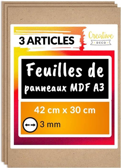 Feuille Planche Panneau Bois Brut - 25 x A4 MDF 300 x 210 x 3 mm -Idéal pour Bricolage, Découpe au Laser, CNC Routeur, Modelage - Beaux-Arts et Loisirs créatifs Spécification: - Matériel : Bois Tableau de taille: - 300 mm x 50 mm x 1 mm/11,81 pouces x 1,97 pouces x 0,04 pouces - 100 mm x 100 mm x 1 mm/3,94 pouces x 3,94 pouces x 0,04 pouces - 150 mm x 100 mm x 1 mm/5,91 pouces x 3,94 pouces x 0,04 pouces - 250 mm x 100 mm x 1 mm/9,84 pouces x 3,94 pouces x 0,04 pouces Le forfait Comprend: 10 feuilles de bois Note: La couleur peut être légèrement différente en raison de l'étalonnage des couleurs de chaque moniteur individuel. Plaque En Bois PAQUET DE 15 Feuilles De Bois Non Finies, Planche De Bois Mince En Bois Feuilles De Bois Modélisme - 【Excellent cadeau】 : les modèles fabriquant des feuilles de bois sont des cadeaux de festival et d'anniversaire parfaits pour les enfants, les amis et les membres de la famille pour leur permettre de réaliser des projets de bricolage. JISADER 10x Feuilles de Bois de Balsa, Contreplaqué 2, Placage de... Duokon plaque en bois vierge Panneau en Bois Inachevé à Peindre... 【Excellent cadeau】 : les modèles fabriquant des feuilles de bois sont des cadeaux de festival et d'anniversaire parfaits pour les enfants, les amis et les membres de la famille pour leur permettre de réaliser des projets de bricolage. Veuillez permettre un léger écart de mesure en raison de la mesure manuelle. 【Le paquet contient】 : 10 feuilles de bois. - 【Inachevé】 : vous devez réaliser le modèle vous-même et exercer votre capacité manuelle et votre imagination. 【Inachevé】 : vous devez réaliser le modèle vous-même et exercer votre capacité manuelle et votre imagination. Description: - 【Le paquet contient】 : 10 feuilles de bois.